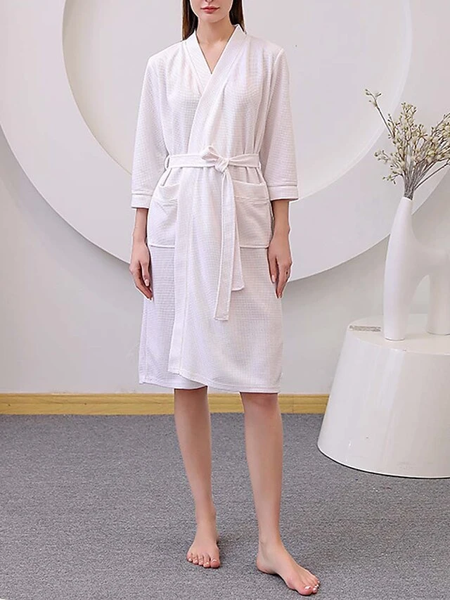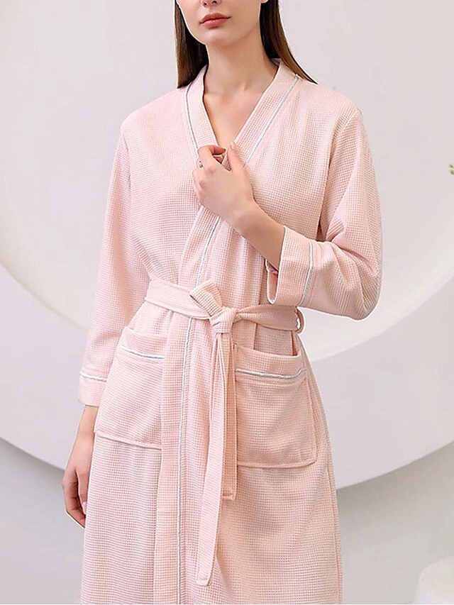 Women’s Bathrobe Pure Color Simple Casual Comfort Home Daily Bed Polyester Breathable V Wire Long Sleeve Fall Winter