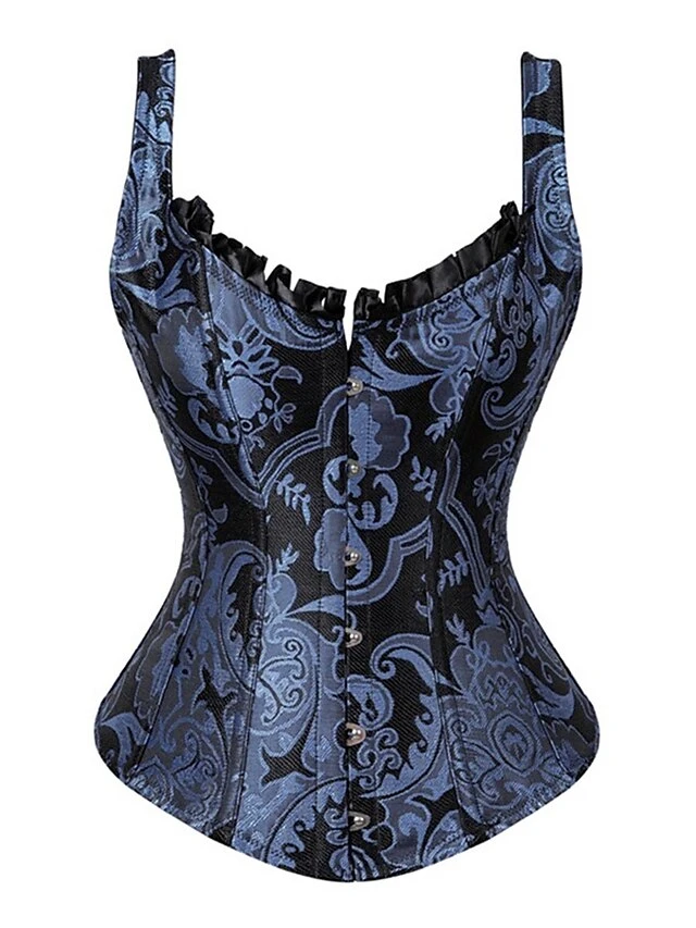 Women’s Body Shaper Flower Fashion Corsets Gothic Party Halloween Going Out Polyester Breathable Straps Sleeveless Backless Summer Spring Silver Blue