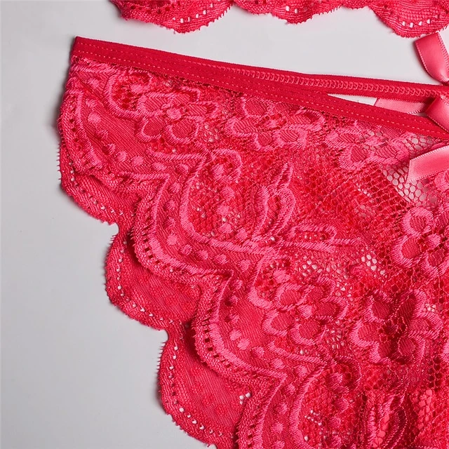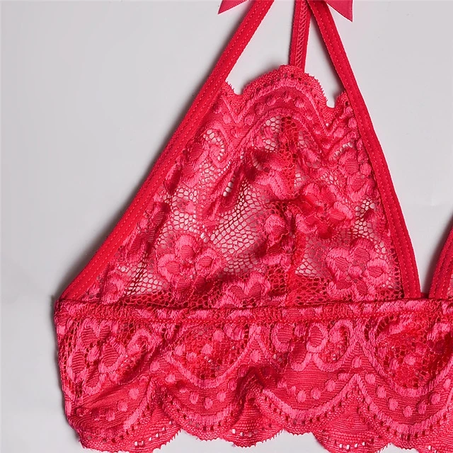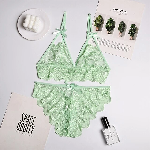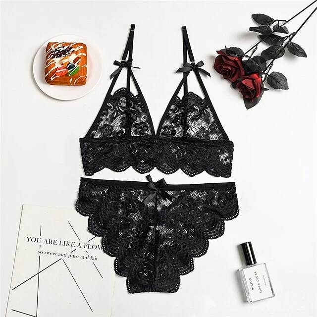 Women‘s Christmas Lingeries Gift Lace Bras Fixed Straps Sheer Bras Triangle Cup V Neck Breathable Lace Hook & Eye Date Casual Daily Xmas Sexy 1 Set White Black / Bra & Panty Set