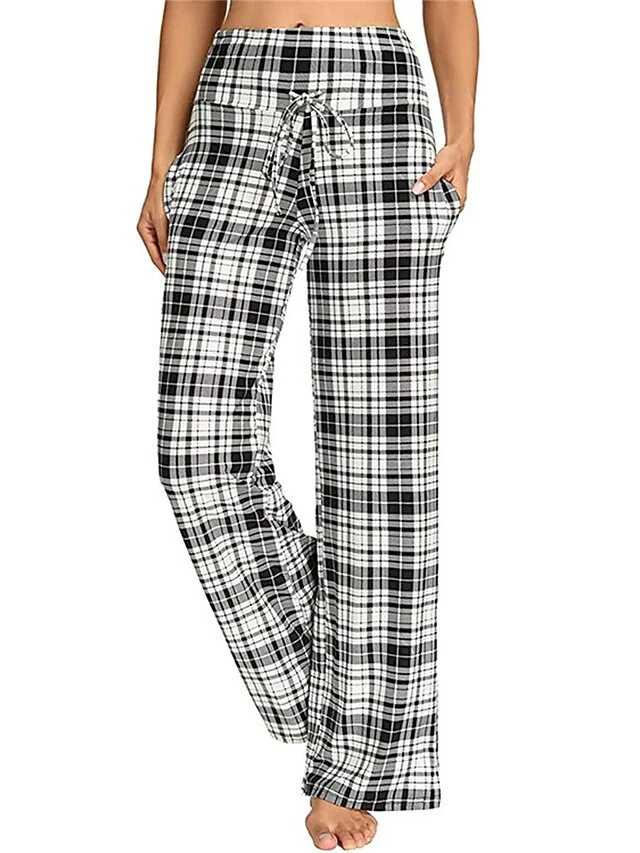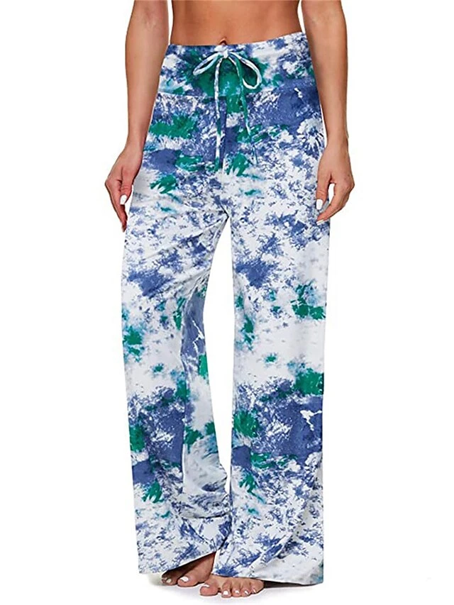 Women’s Christmas Loungewear Pants Elk Tie Dye Sport Casual Comfort Xmas Home Christmas Daily Polyester Breathable Pant Summer Fall Blue Square Red Plaid