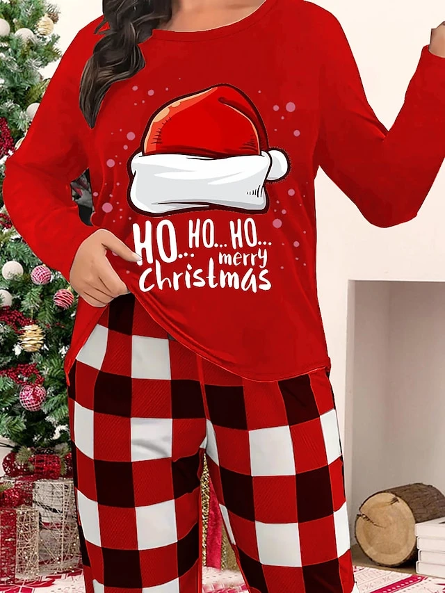 Women’s Christmas Pajamas Top Letter Santa Claus Comfort Soft Home Christmas Spandex Fall Winter Black Red