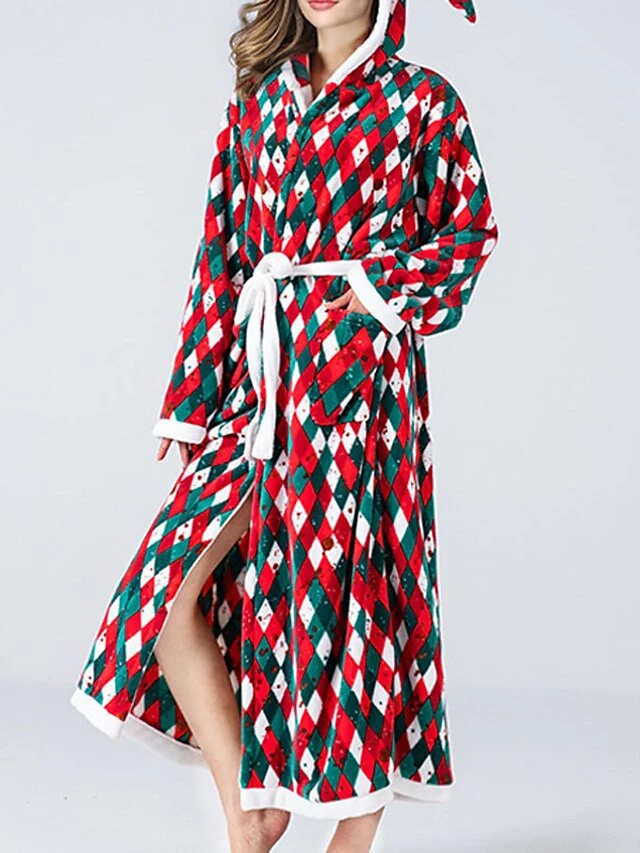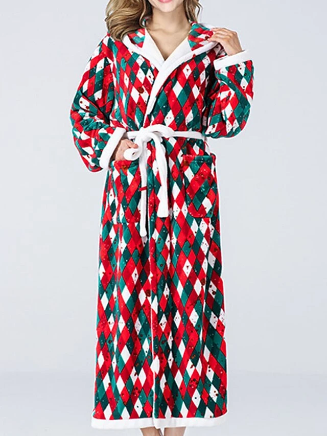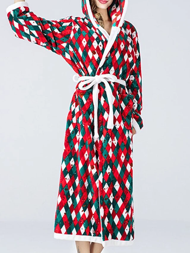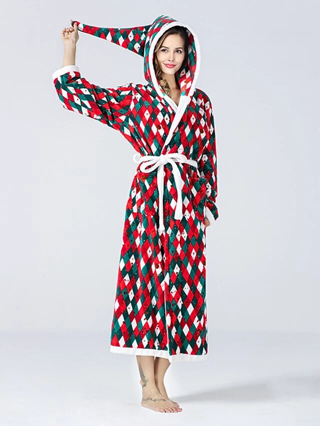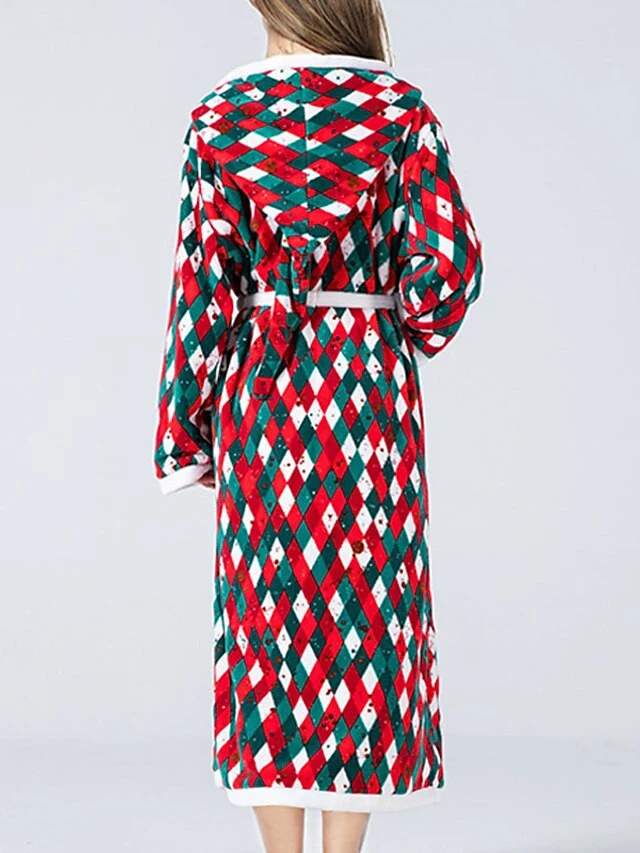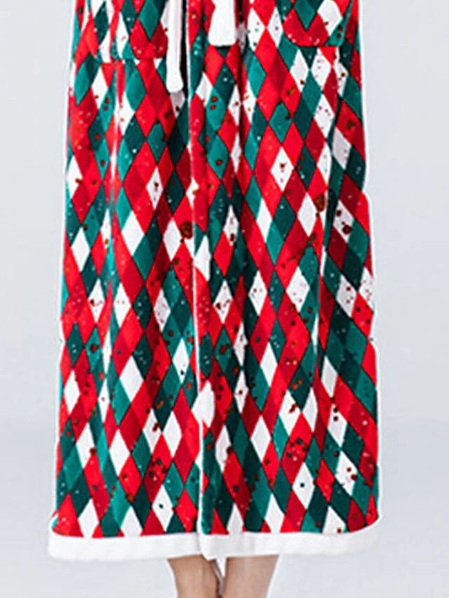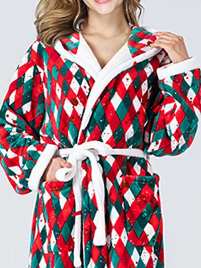 Women’s Christmas Robes Gown Bathrobes Pjs Grid / Plaid Comfort Home Xmas Cotton Hoodie Long Sleeve Pocket Hoodie Winter Fall Red / Flannel