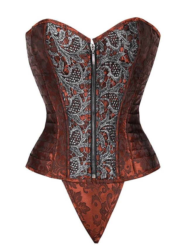 Women’s Corsets Halloween Waist Trainer Body Shaper Pure Color Fashion Retro Hot Party Carnival Polyester Breathable Bandeau Embroidery Adjustable Summer Spring Brown