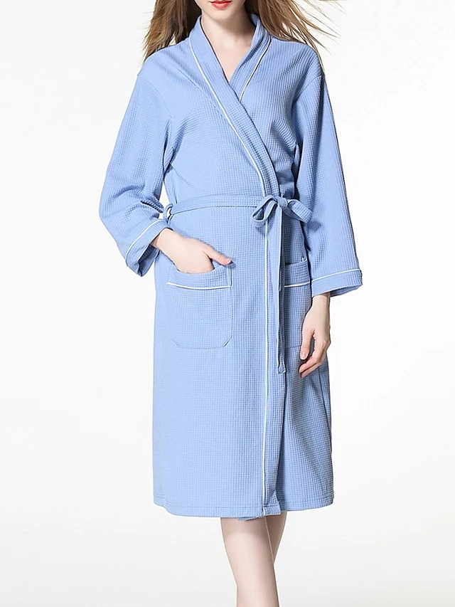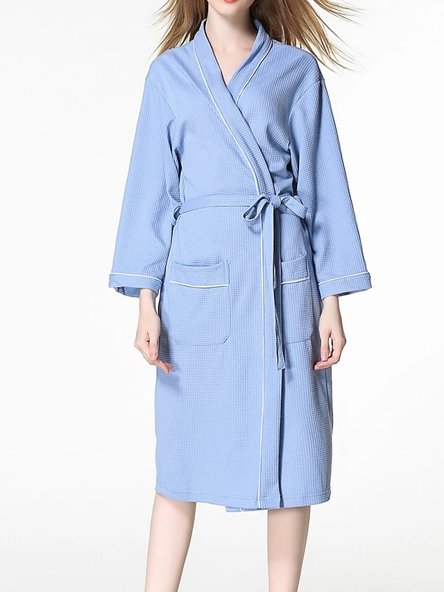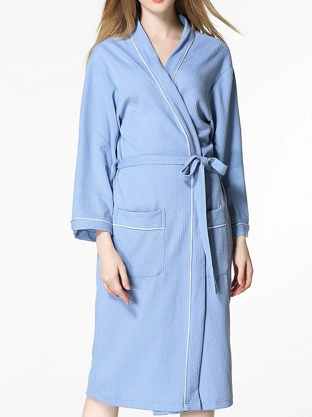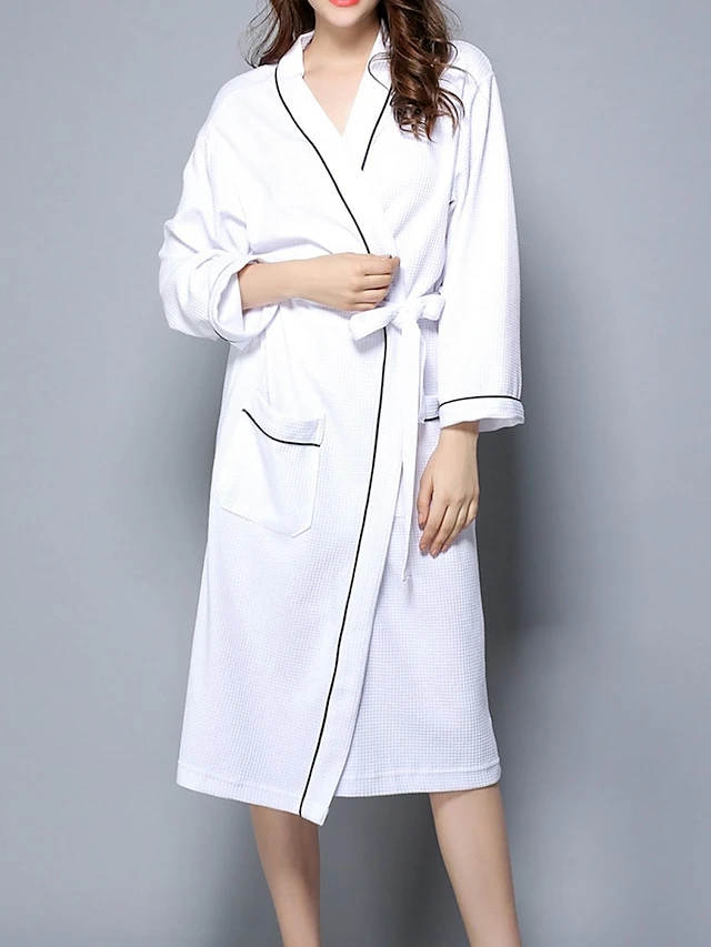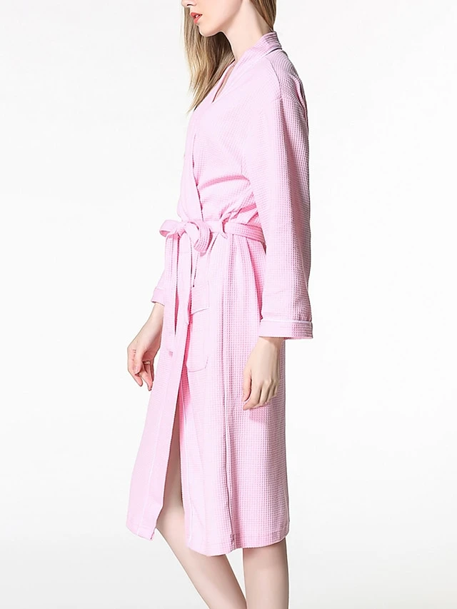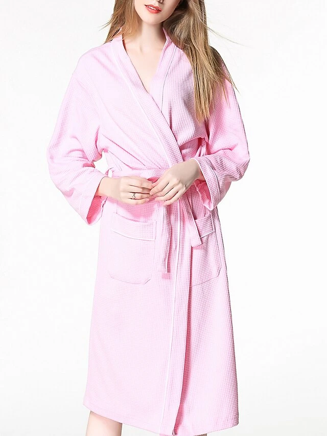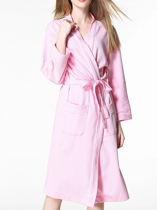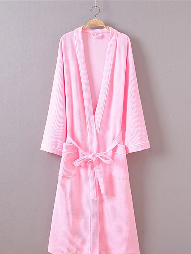 Women’s Cotton Robe Pure Color Simple Casual Comfort Home Bed Wedding Party Breathable V Wire Long Sleeve Pocket Fall Winter White Pink