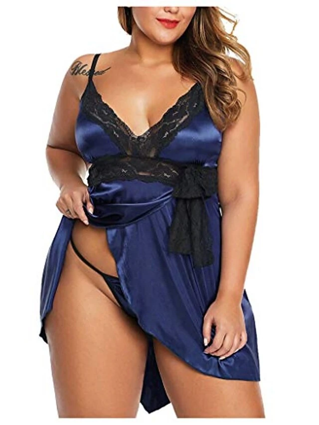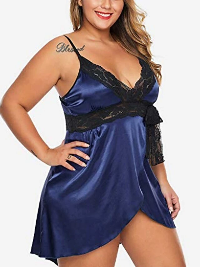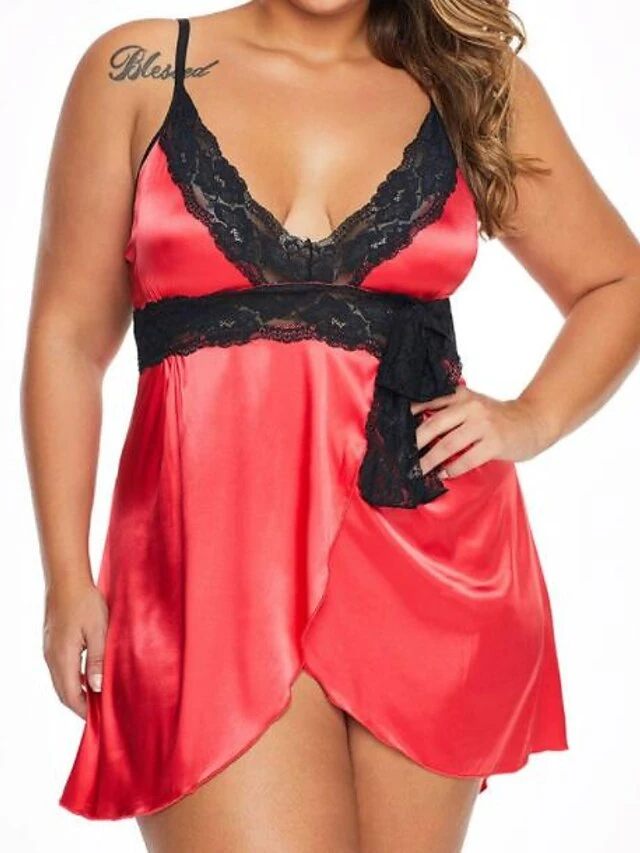 Women’s Curve Plus Size Pajamas Loungewear Lace Bow Plain Sexy Valentine’s Day V Neck Winter Fall Lace Bras Black Red Violet Big Size XL XXL 3XL 4XL 5XL