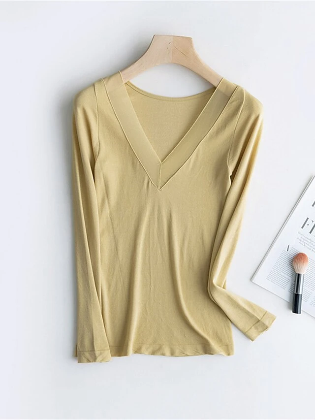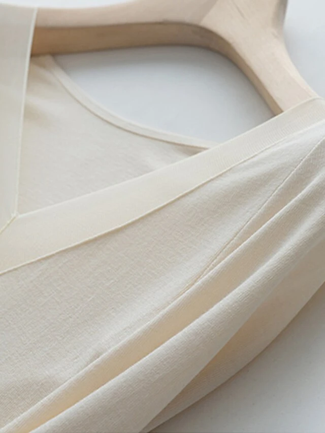 Women’s Delong Thermal Shirt Top Pure Color Warm Simple Casual Home Daily Going Out Nylon Warm V Wire Long Sleeve Fall Winter Black Camel