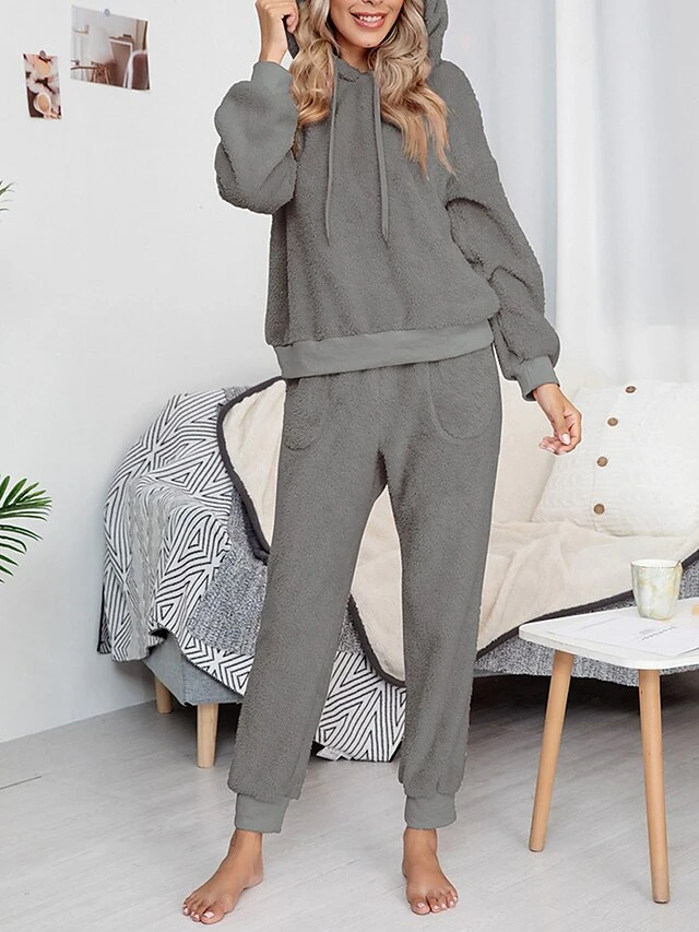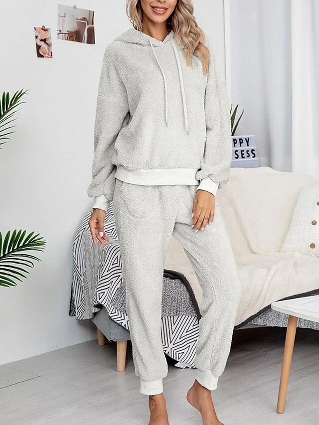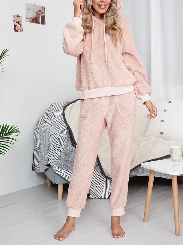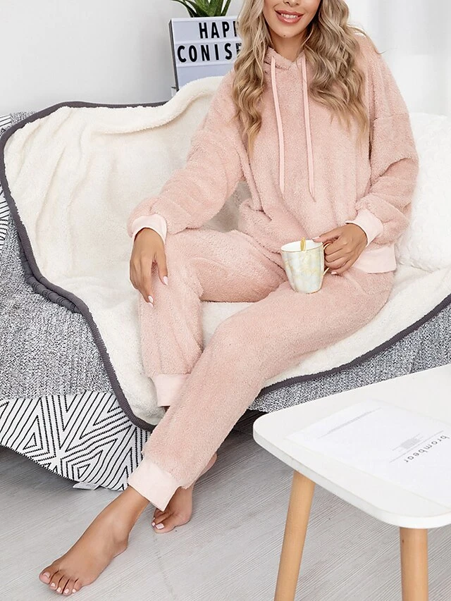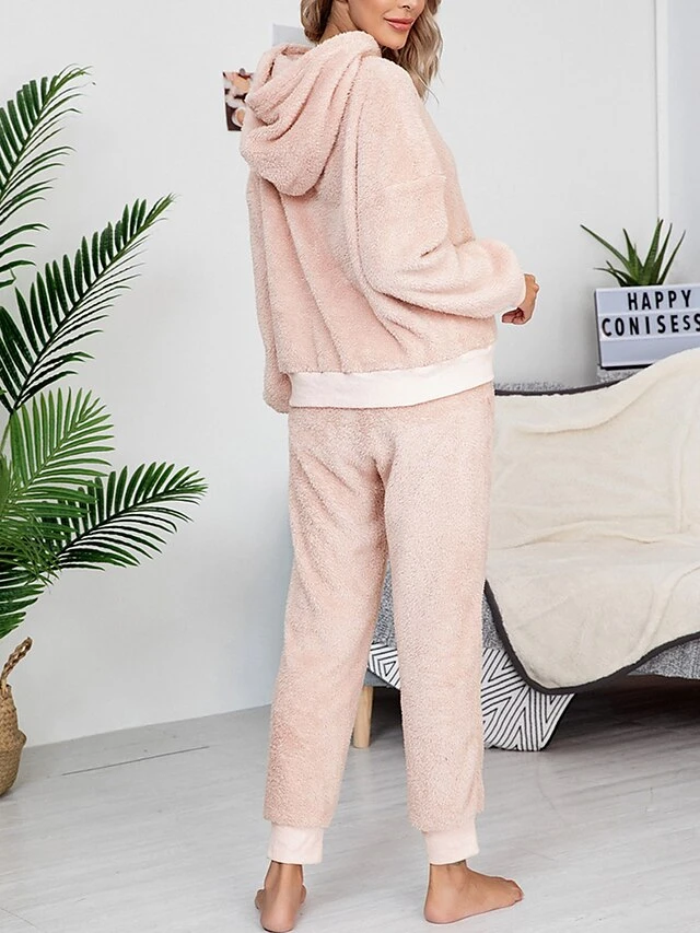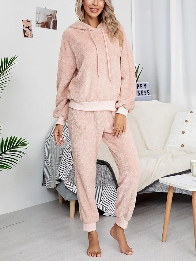 Women’s Fleece Lounge Sets 2 Pieces Pure Color Fashion Casual Comfort Street Daily Date Polyester Warm Hoodie Long Sleeve Pant Fall Winter Pink Camel