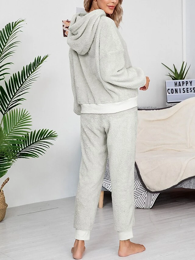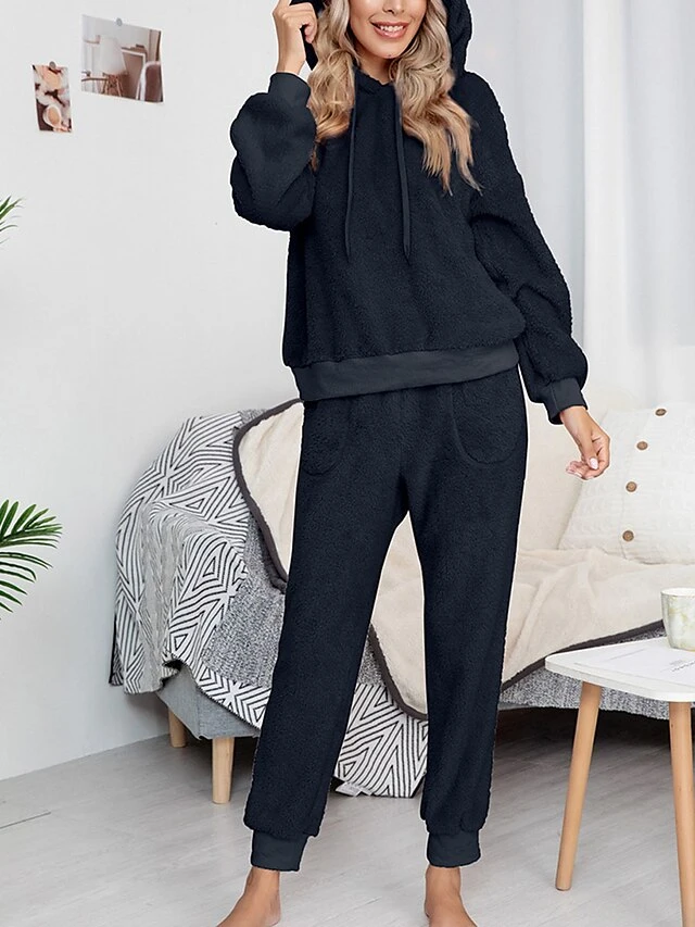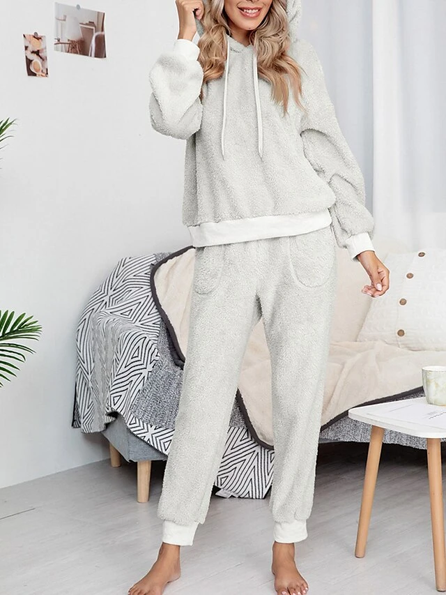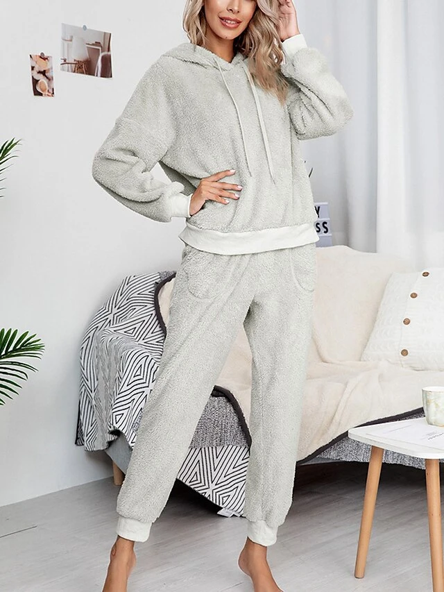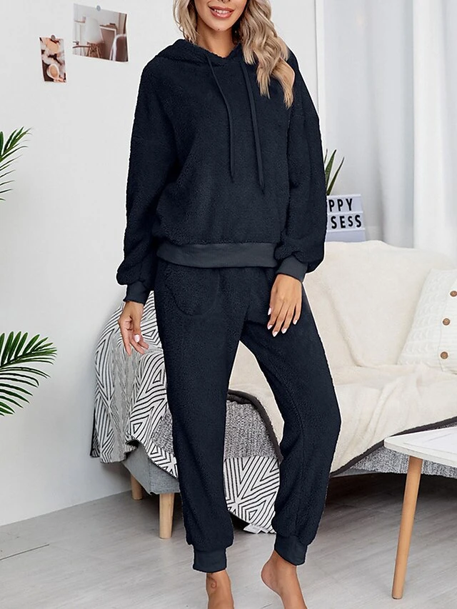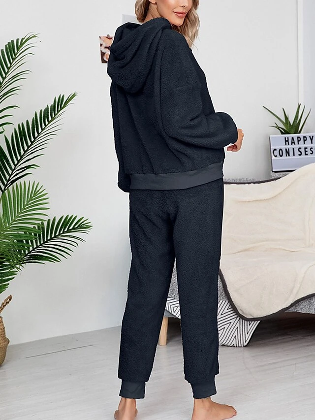 Women’s Fleece Lounge Sets 2 Pieces Pure Color Fashion Casual Comfort Street Daily Date Polyester Warm Hoodie Long Sleeve Pant Fall Winter Pink Camel