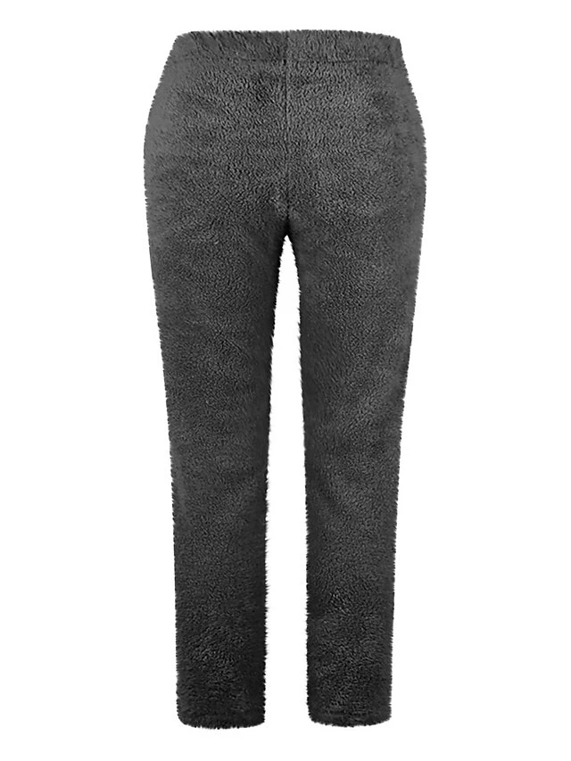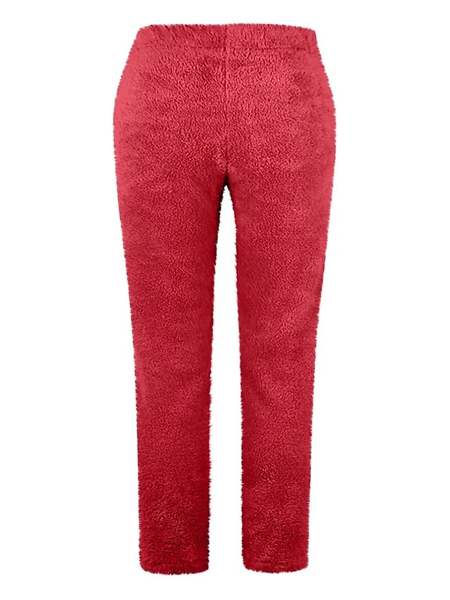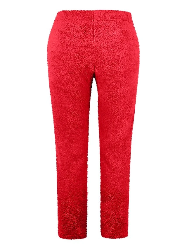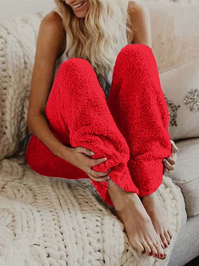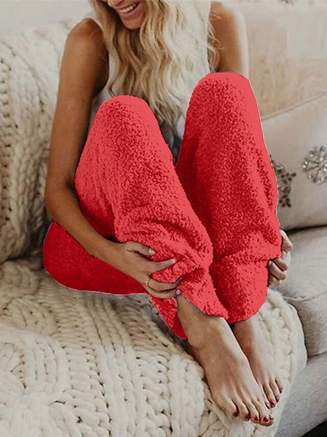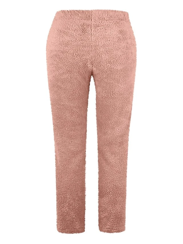 Women’s Fleece Pajamas Pants Pure Color Fashion Simple Casual Street Date Airport Flannel Breathable Long Pant Elastic Waist Fall Winter Black Pink