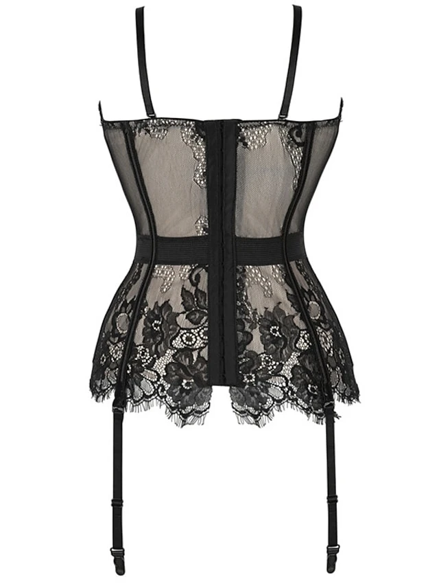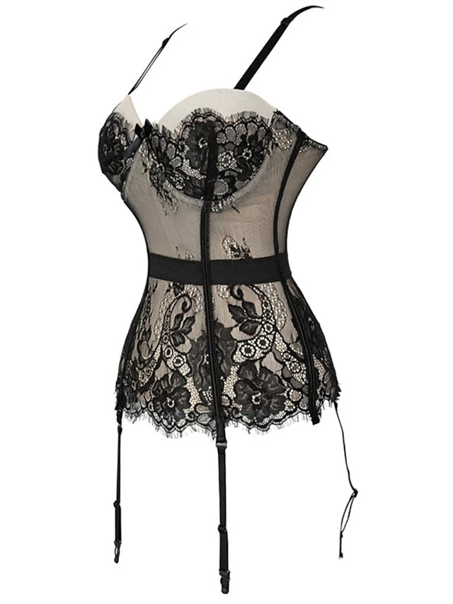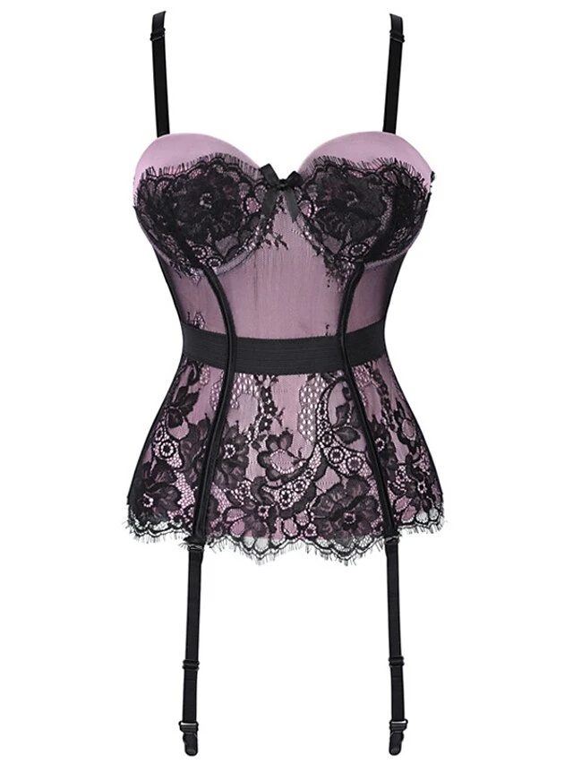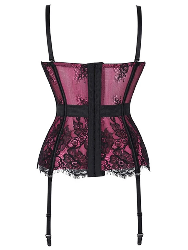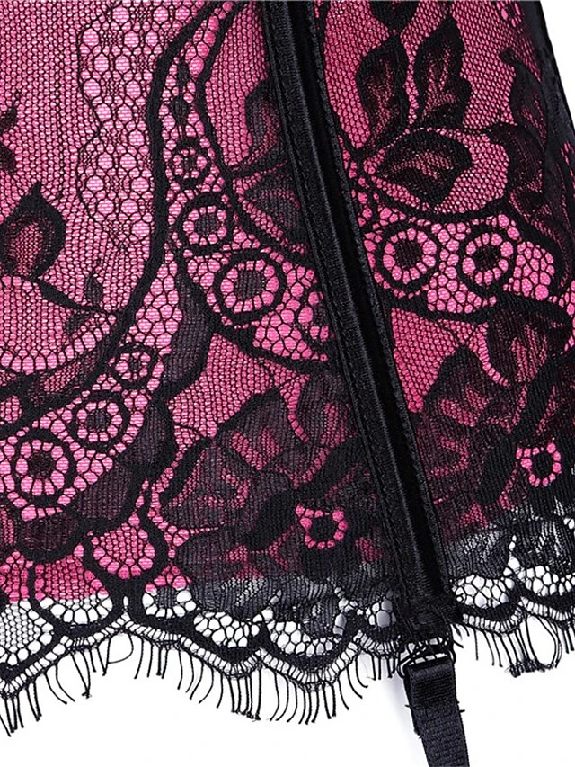 Women’s Gartered Lingerie Sexy Lingerie Teddies & Bodysuits 1 Set Flower Sexy Uniforms Casual Bed Valentine’s Day Polyester V Wire Sleeveless Lace Bow Fall Summer Purple Red / Buckle / Buckle