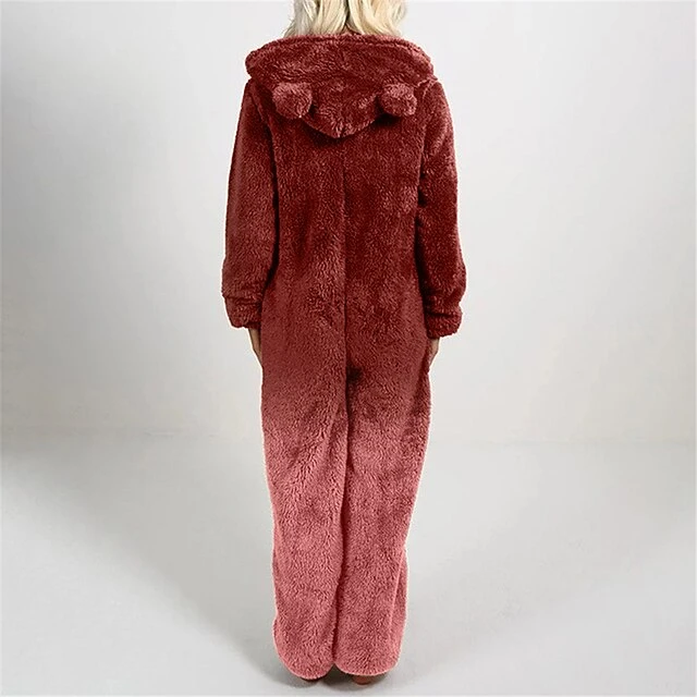 Women’s Hoodie Onesies Pajama For Adult Jumpsuits Pjs Patchwork Comfort Soft Home Bed Cashmere Warm Hoodie Long Sleeve Winter Fall Purple Red / Zipper