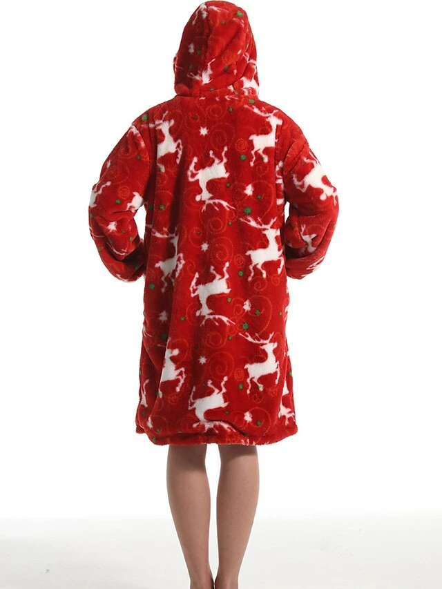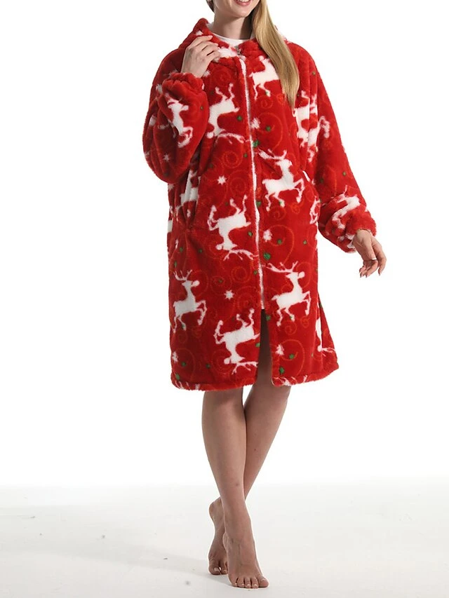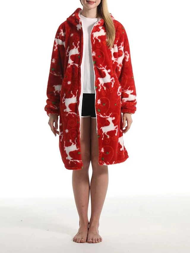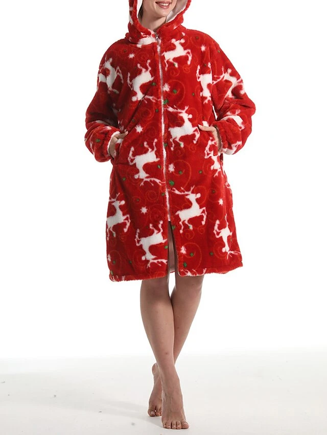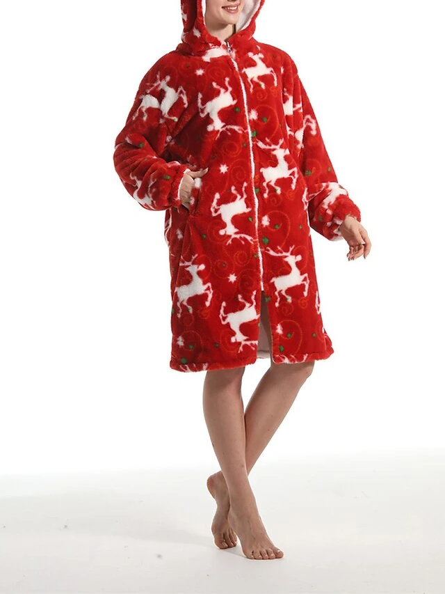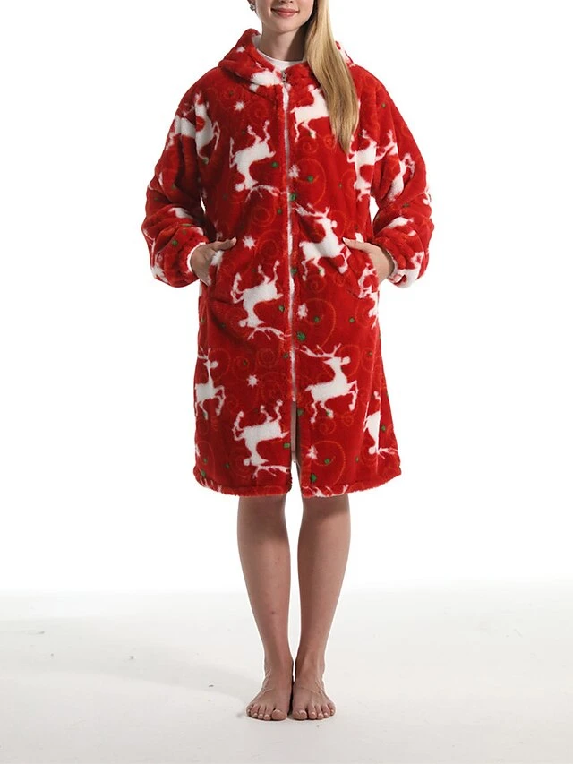 Women’s Hoodie Zip Up Robe Elk Plush Casual Comfort Xmas Home Christmas Daily Flannel Warm Breathable Hoodie Long Sleeve Pocket Fall Winter Red