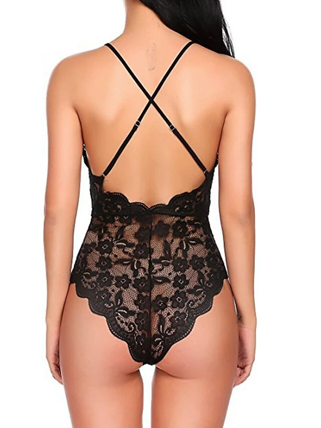 Women’s Lace Backless Sexy Lingerie Sexy Bodies Nightwear – Spandex Solid Colored Sexy Lingerie Set Black / White / Red S M L