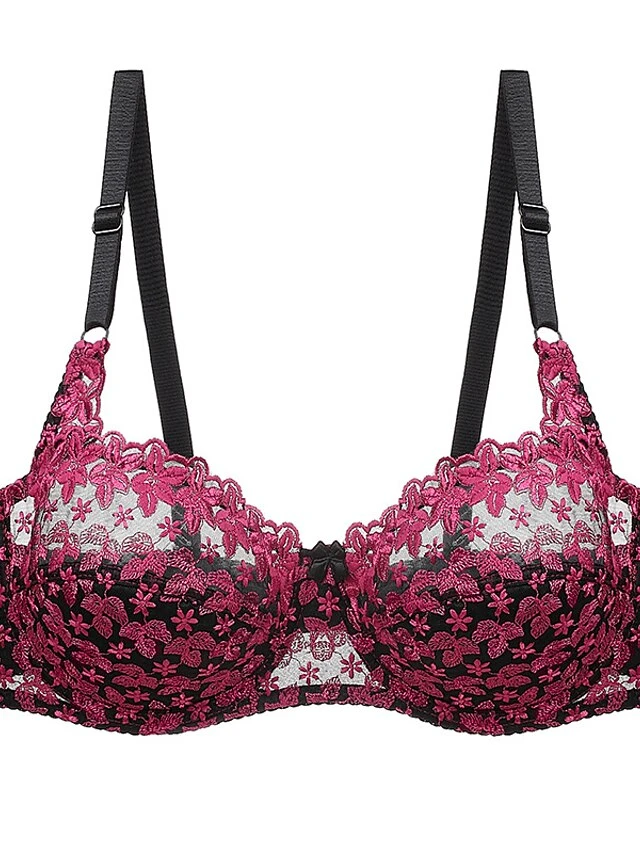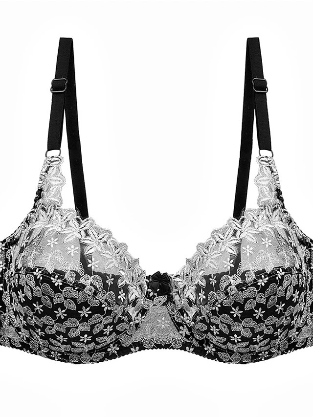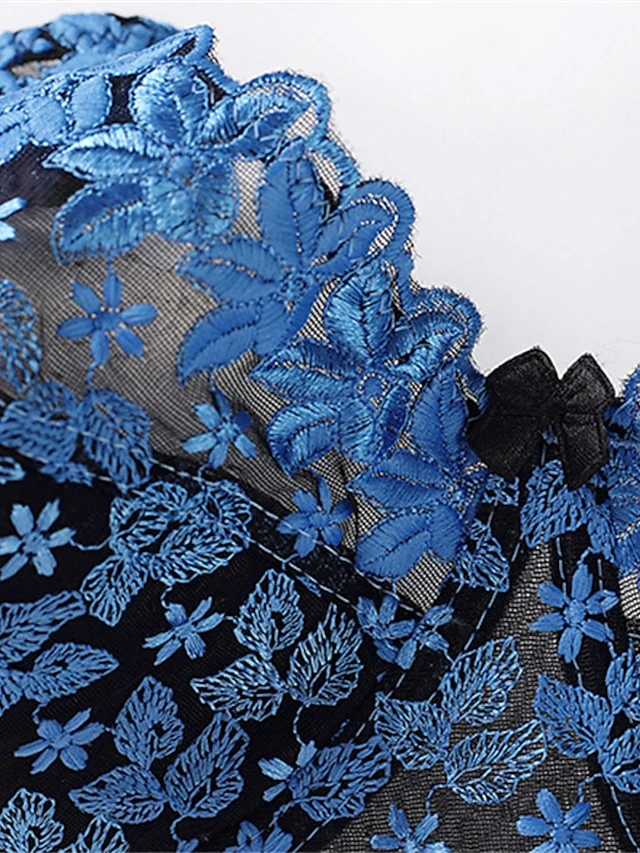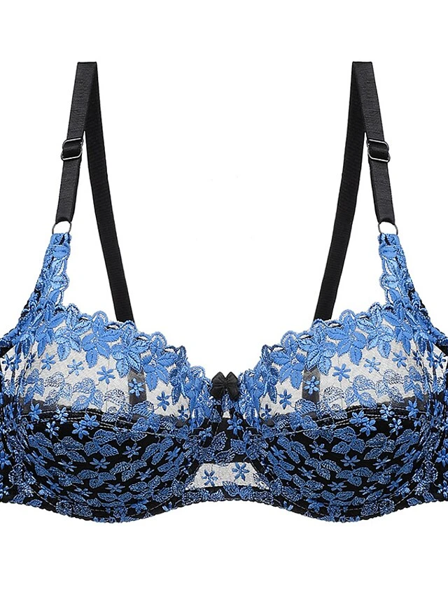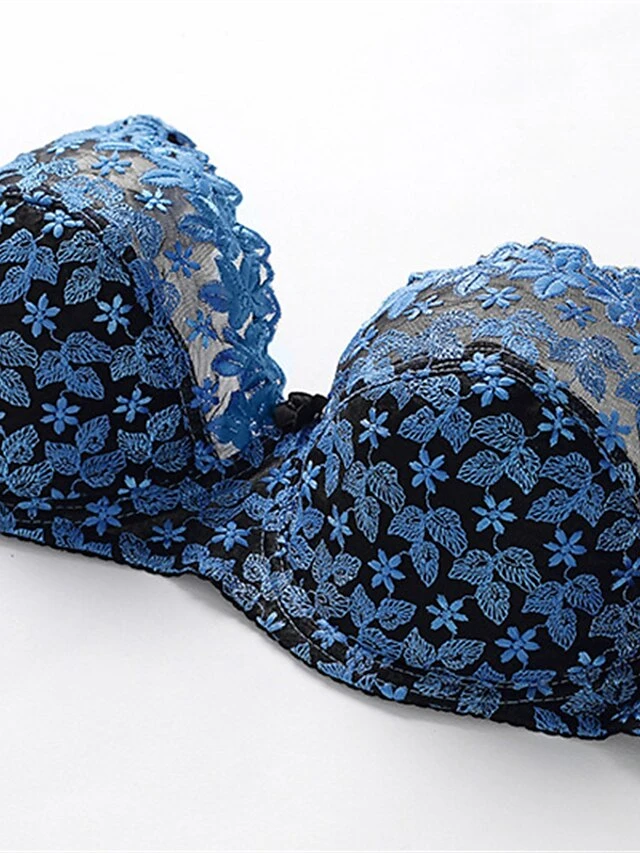 Women’s Lace Bras Underwire Bras Fixed Straps Adjustable Full Coverage V Neck Breathable Push Up Pure Color Flower / Floral Hook & Eye Date Casual Daily Nylon Sexy 1PC White Blue / Bras & Bralettes