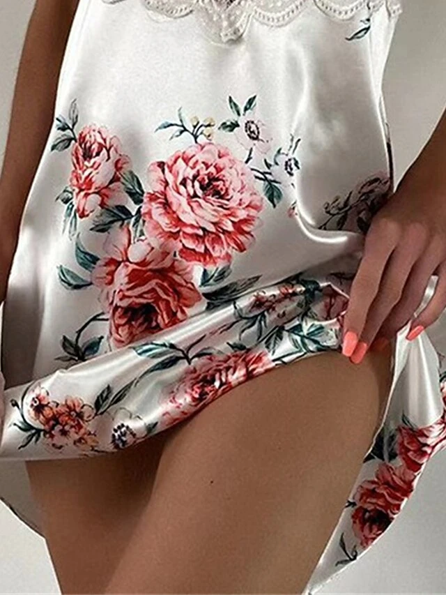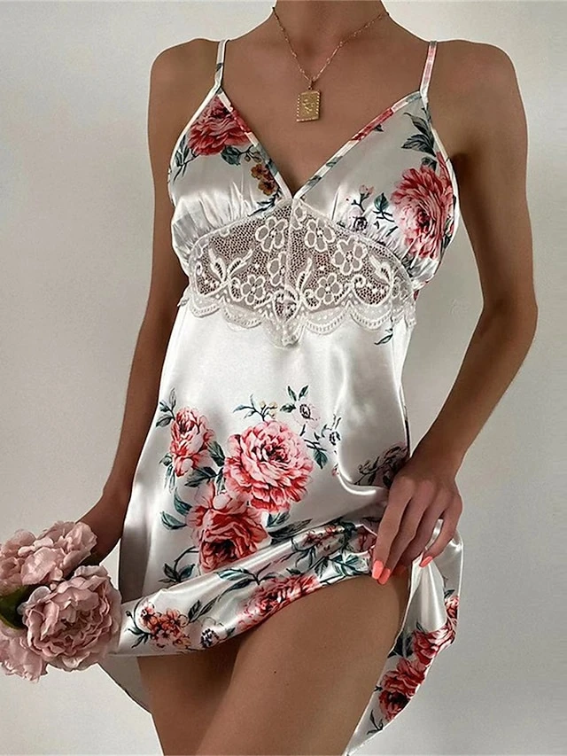 Women’s Lace Slip Lingerie Nightgown Nightshirt Dress Pure Color Simple Casual Comfort Home Daily Bed Satin Breathable V Wire Sleeveless Fall Winter White