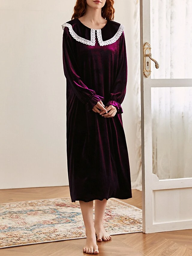 Women’s Loungewear Dress Patchwork Warm Simple Casual Street Daily Date Velvet Warm Breathable Crew Neck Long Sleeve Fall Winter Pink Blue