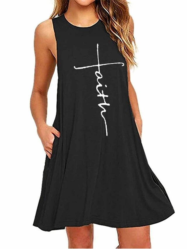 Women’s Loungewear Nightshirt Dress Letter Fashion Casual Street Date Airport Cotton Blend Breathable Crew Neck Sleeveless Pocket Summer Spring Black White