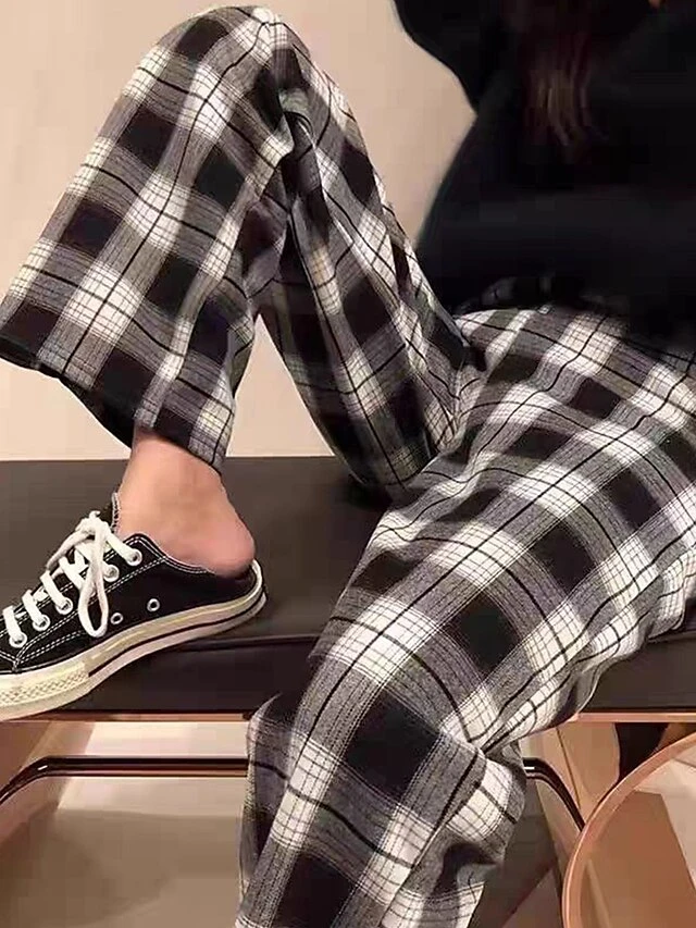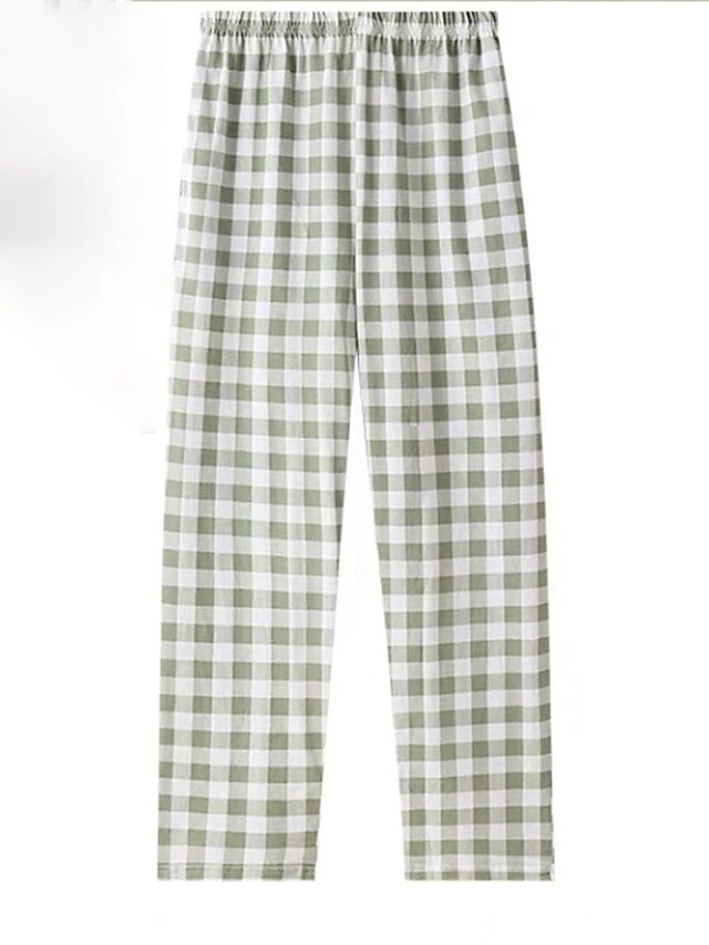 Women’s Loungewear Pants Grid / Plaid Fashion Casual Soft Home Daily Bed Nylon Breathable Long Pant Pant Pocket Summer Fall Black Light Green