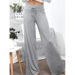 Women’s Loungewear Pants Nighty 1 PCS Pure Color Fashion Simple Comfort Home Daily Vacation Cotton Breathable Long Pant Elastic Waist Basic Summer Spring Black Wine