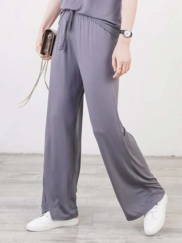 Women’s Loungewear Pants Pure Color Casual Comfort Soft Home Daily Vacation Modal Breathable Long Pant Pant Elastic Waist Summer Fall Light Pink Black