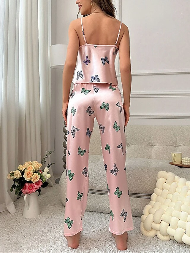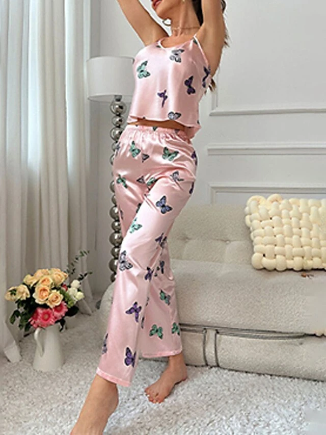 Women’s Loungewear Sets 2 Pieces Butterfly Fashion Casual Comfort Street Daily Date Polyester Breathable Straps Sleeveless Pant Fall Winter Pink