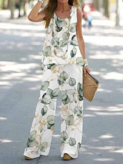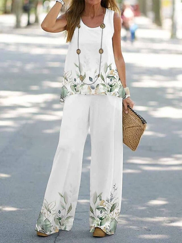 Women’s Loungewear Sets 2 Pieces Butterfly Flower Casual Comfort Street Daily Polyester Breathable Crew Neck Sleeveless Pullover Pant Summer Spring White Purple