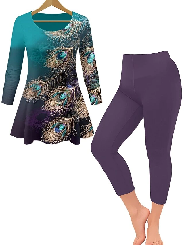 Women’s Loungewear Sets 2 Pieces Leopard Flower Casual Comfort Home Daily Polyester Breathable Crew Neck Long Sleeve Pullover Pant Summer Spring White Purple