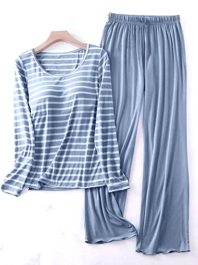 Women’s Loungewear Sets 2 Pieces Stripe Fashion Casual Comfort Street Daily Date Polyester Breathable Crew Neck Long Sleeve Pant Summer Spring Black Pink