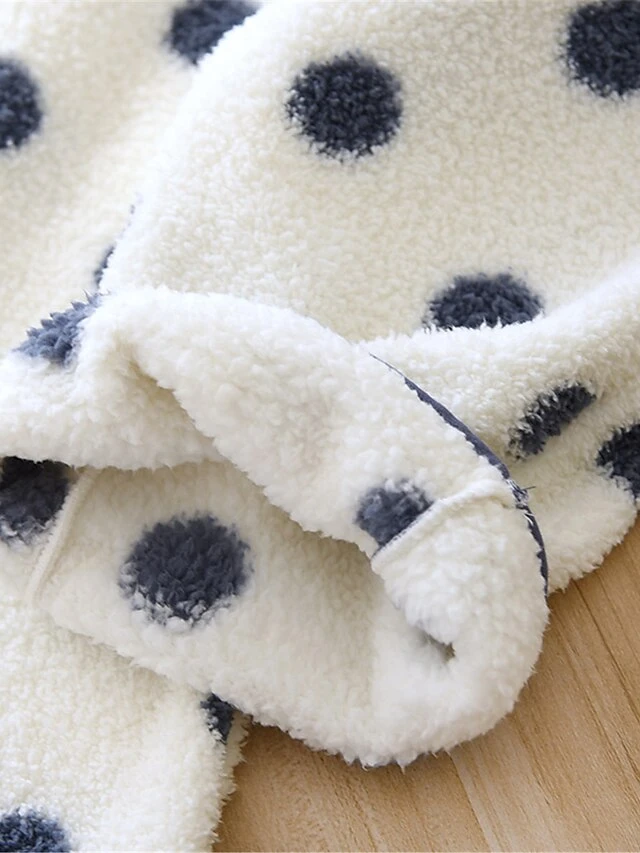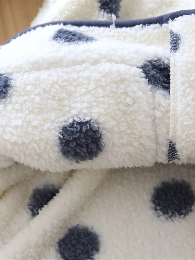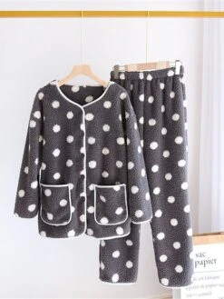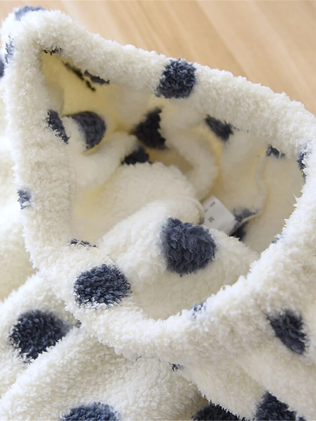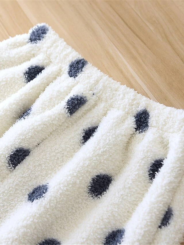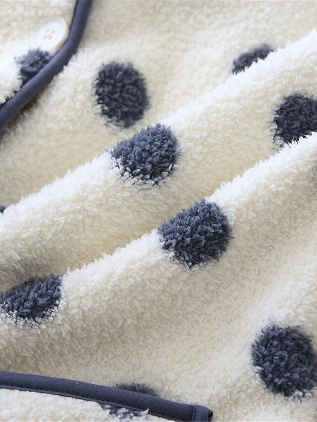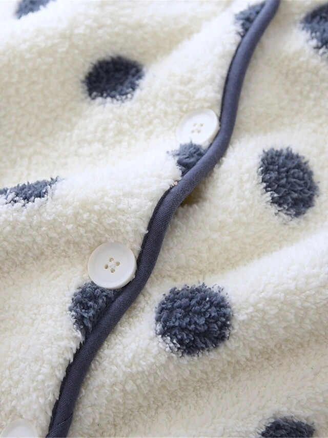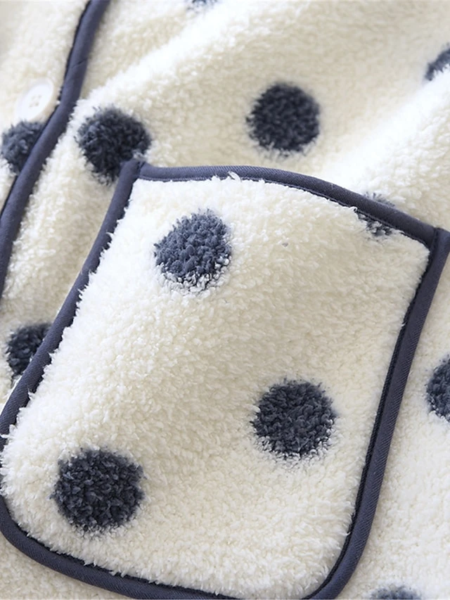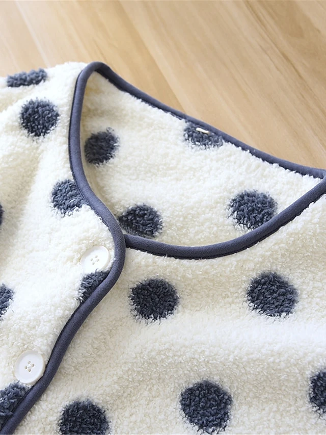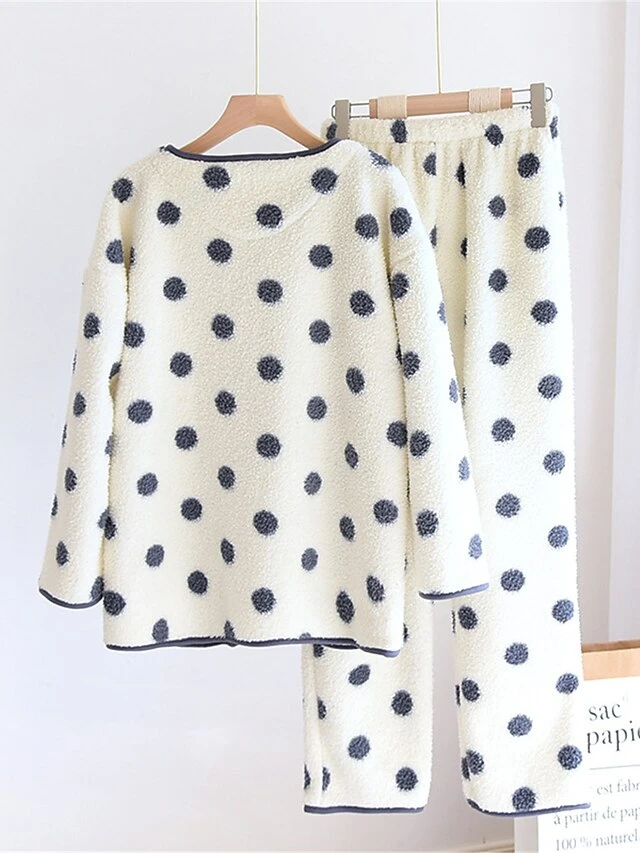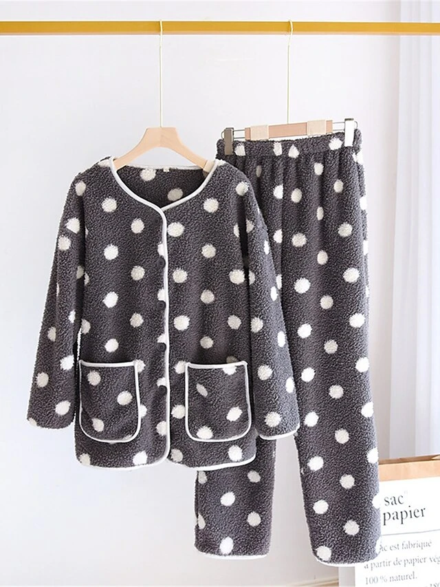 Women’s Loungewear Sets Dot Fashion Comfort Soft Home Daily Bed Flannel Warm Breathable Crew Neck Long Sleeve Shirt Pant Button Pocket Fall Winter Black White