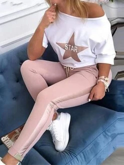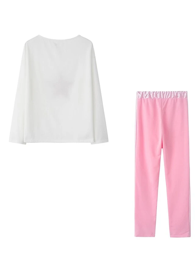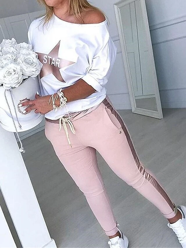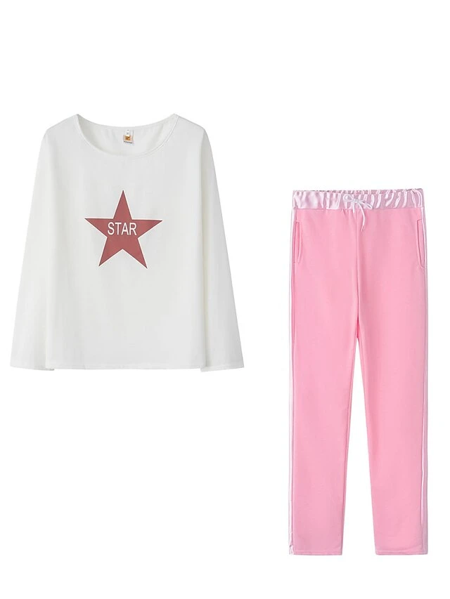 Women’s Loungewear Sets Letter Star Sport Casual Comfort Home Daily Vacation Polyester Breathable Crew Neck Long Sleeve T Shirt Tee Pant Pocket Fall Winter White