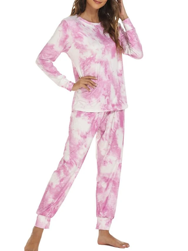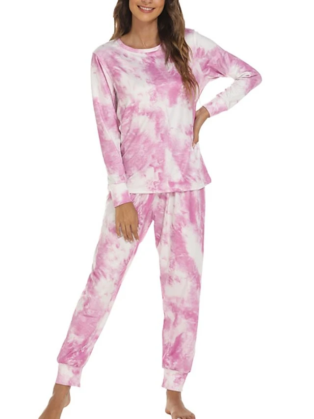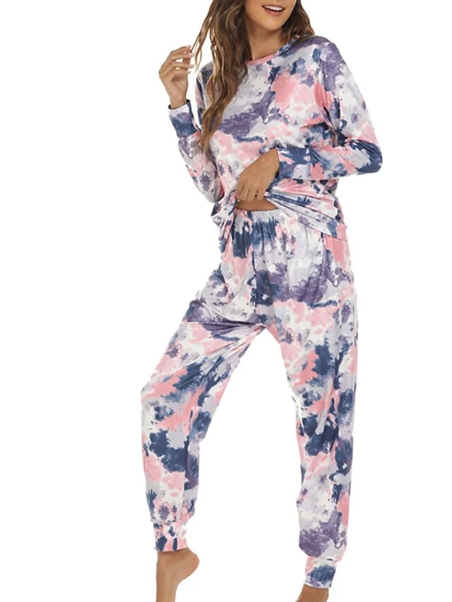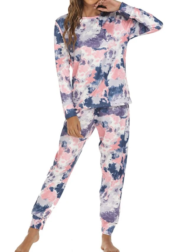 Women’s Loungewear Sets Nighty 2 Pieces Tie Dye Comfort Home Daily Polyester Crew Neck Long Sleeve Pant Fall Spring Blue Pink