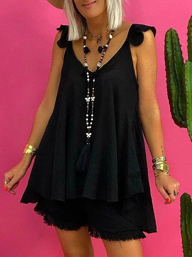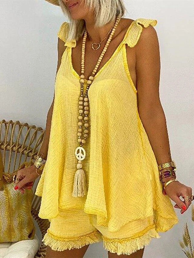 Women’s Loungewear Sets Pure Color Basic Fashion Comfort Street Date Vacation Cotton Breathable Straps Sleeveless Strap Top Shorts Backless Spring Summer Black White