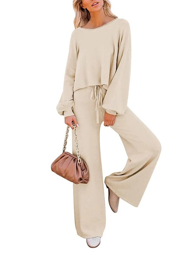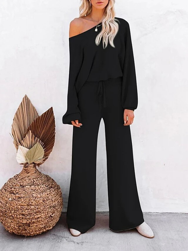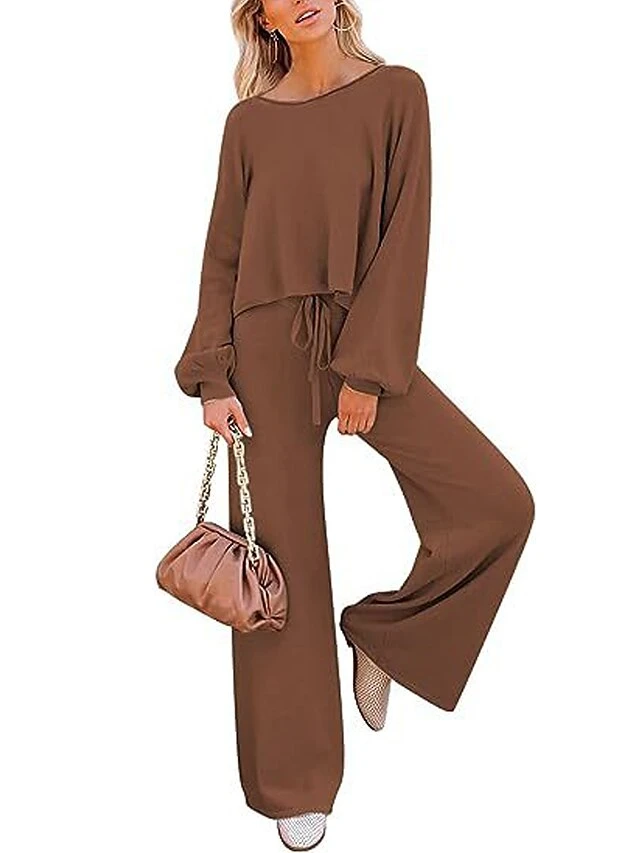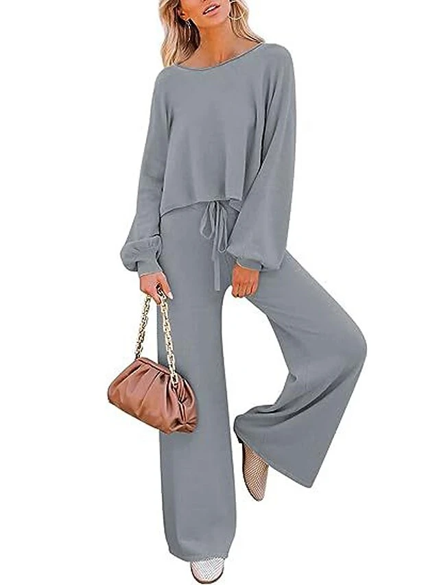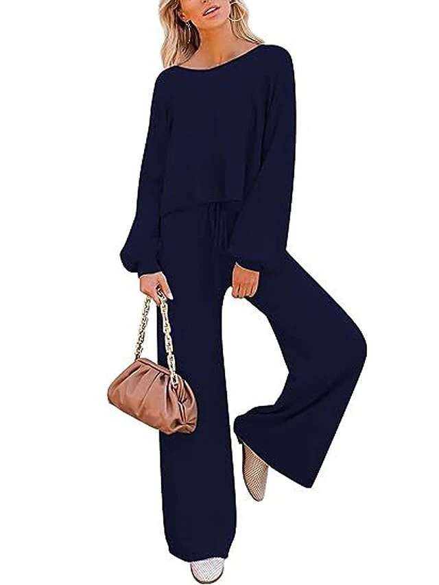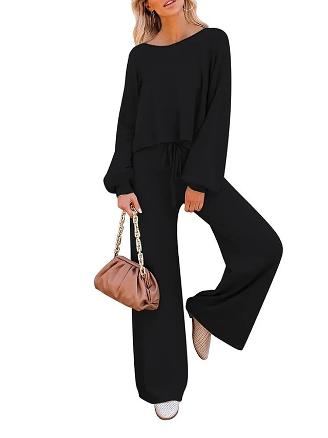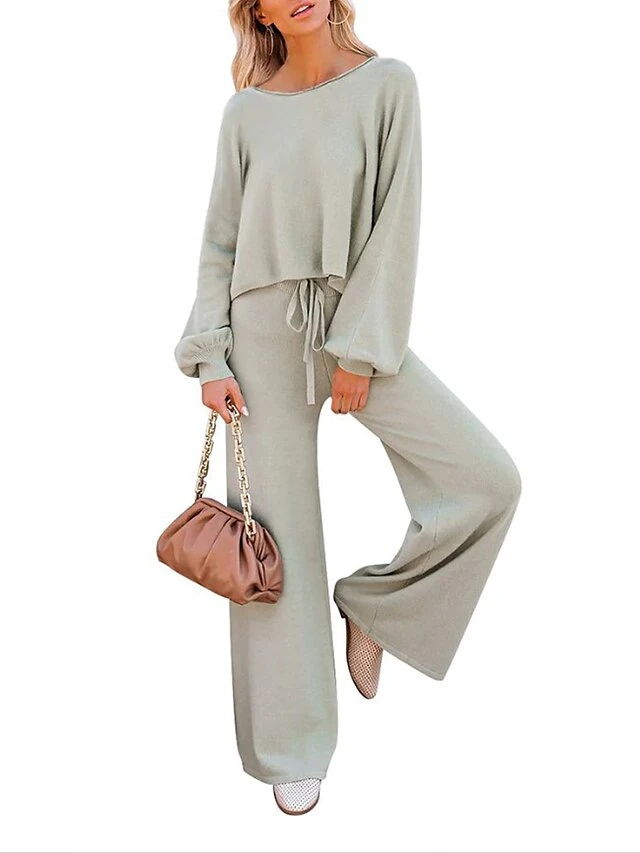 Women’s Loungewear Sets Pure Color Fashion Comfort Soft Home Daily Bed Polyester Breathable Crew Neck Long Sleeve Pullover Pant Fall Winter Black Light Green