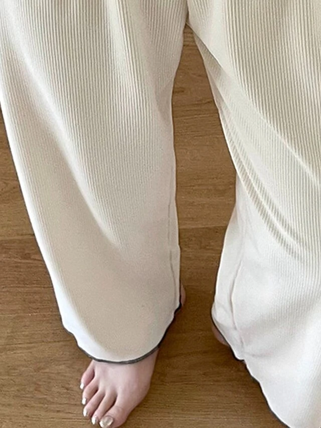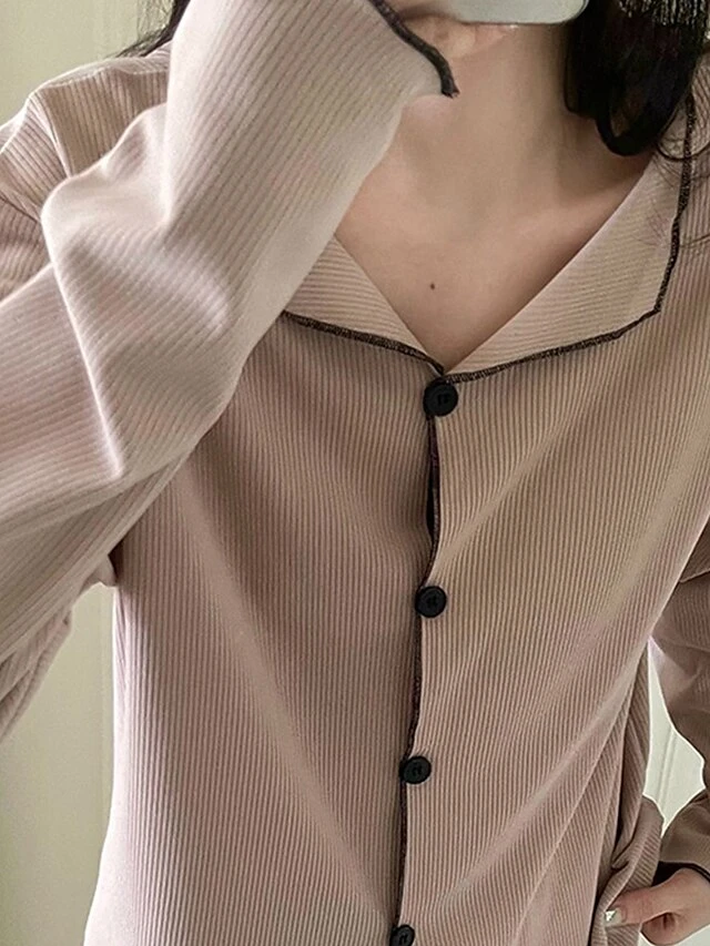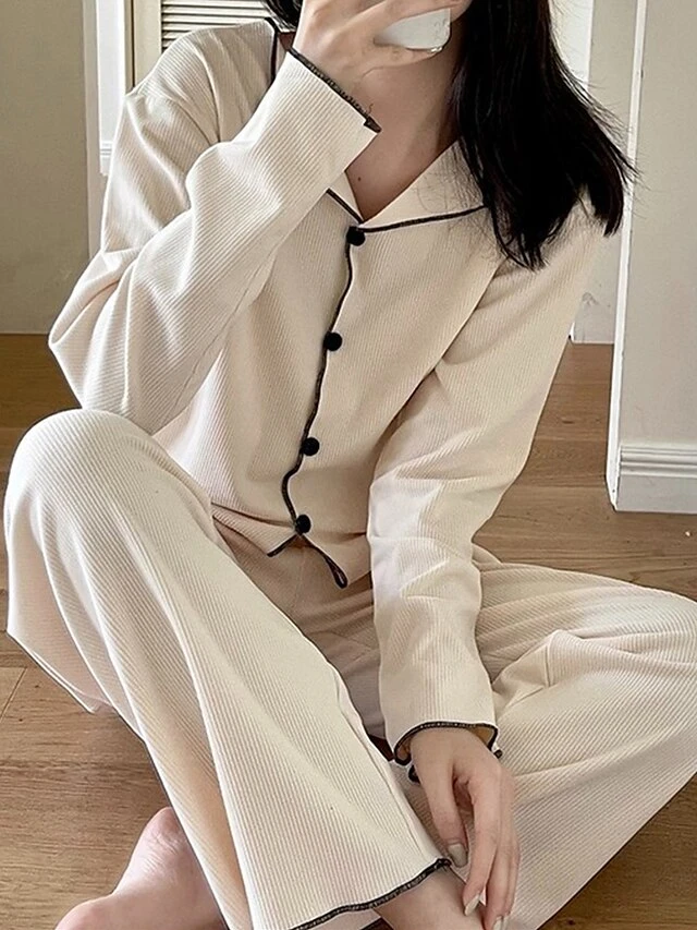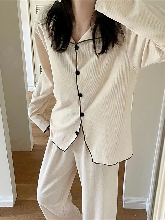 Women’s Loungewear Sets Pure Color Fashion Comfort Soft Home Daily Bed Polyester Breathable Lapel Long Sleeve Pant Button Elastic Waist Fall Winter White Brown