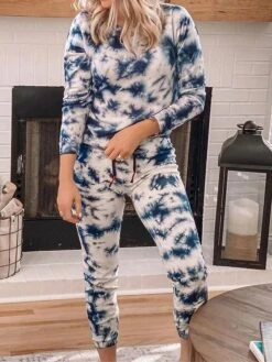 Women’s Loungewear Sets Tie Dye Fashion Comfort Soft Home Daily Bed Polyester Warm Breathable Crew Neck Long Sleeve Pullover Pant Summer Spring Lake Blue