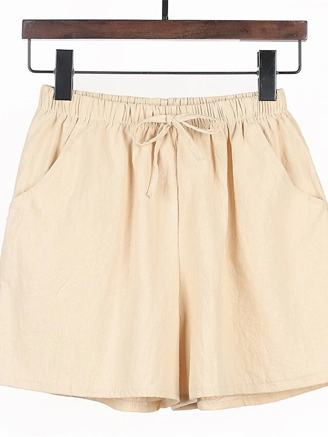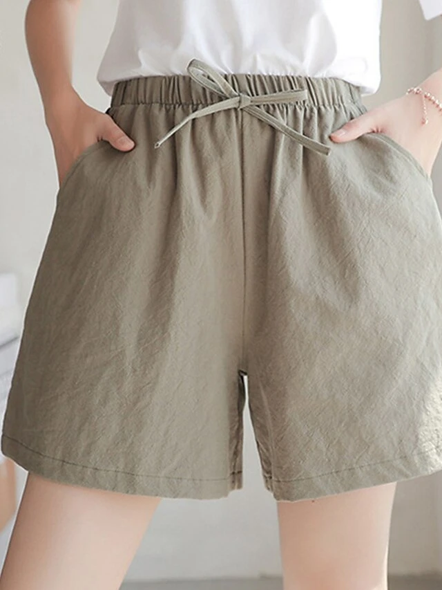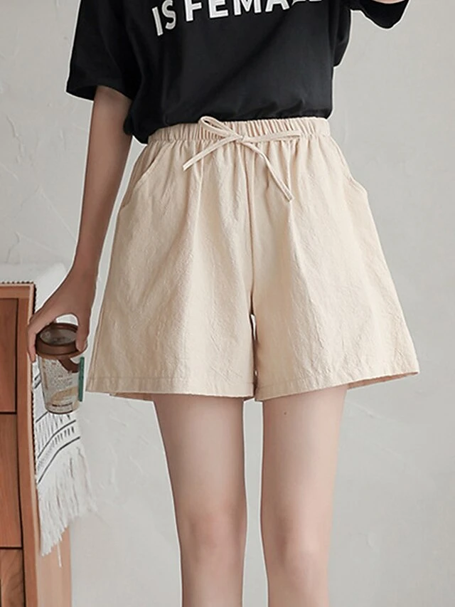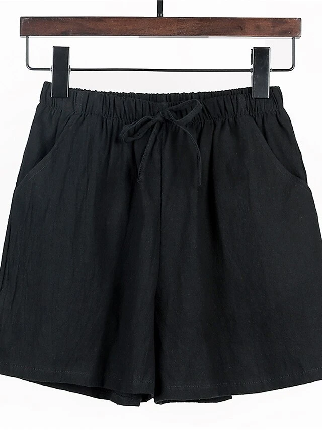 Women’s Loungewear Shorts Comfy Summer Shorts Cotton Elastic Waist Casual Solid Color Drawstring Comfy Shorts Black White