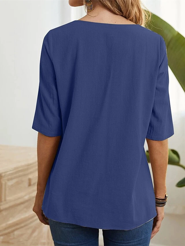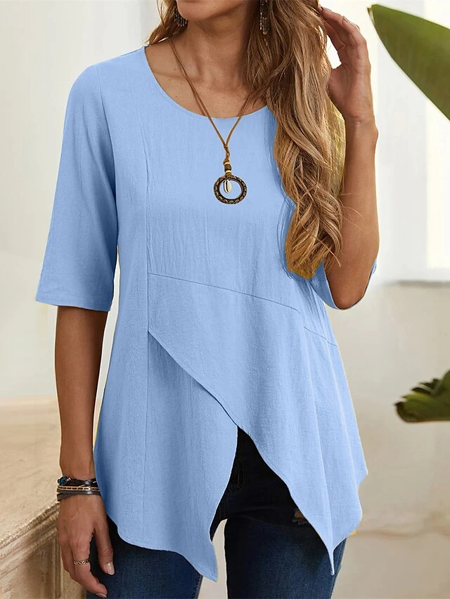 Women’s Loungewear Top Pure Color Fashion Comfort Soft Street Daily Date Cotton Breathable Crew Neck Half Sleeve Summer Spring White Yellow