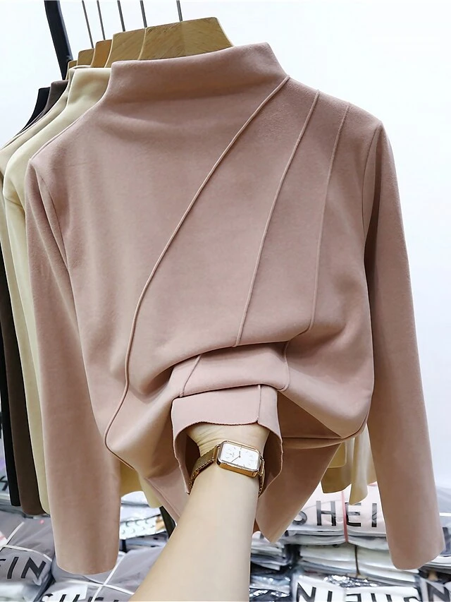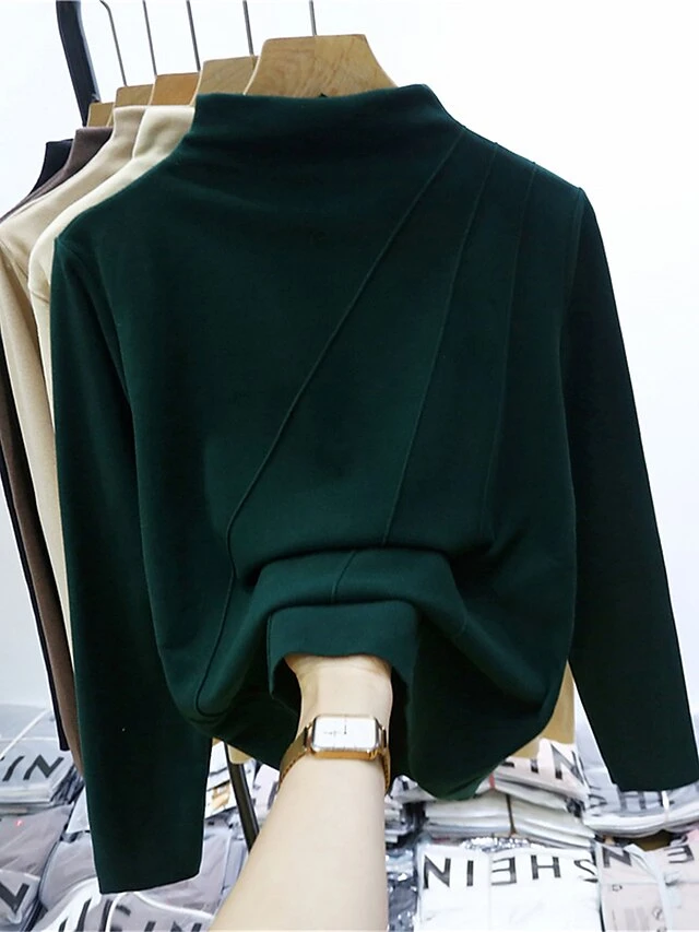 Women’s Loungewear Top Pure Color Fashion Comfort Street Date Airport Polyester Warm High Neck Long Sleeve Fall Winter Black Yellow