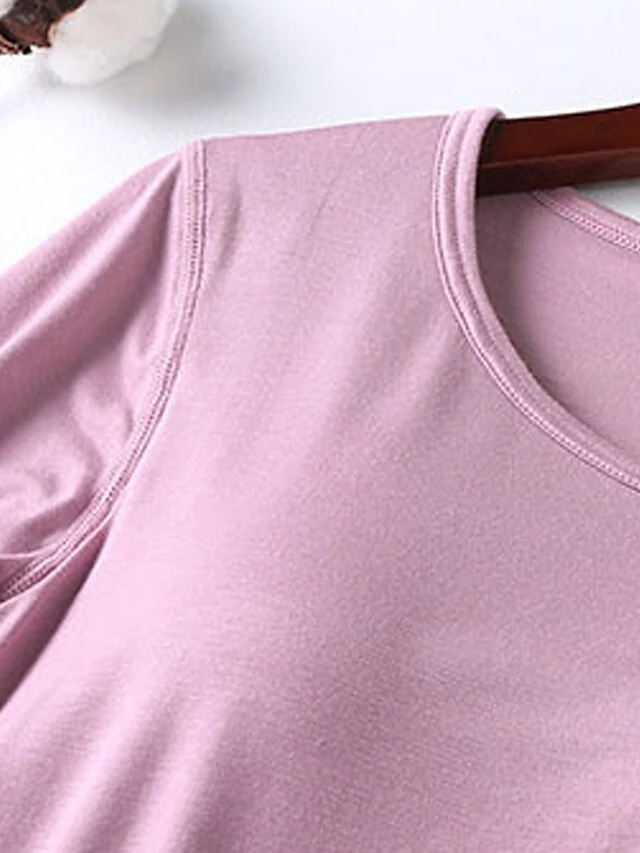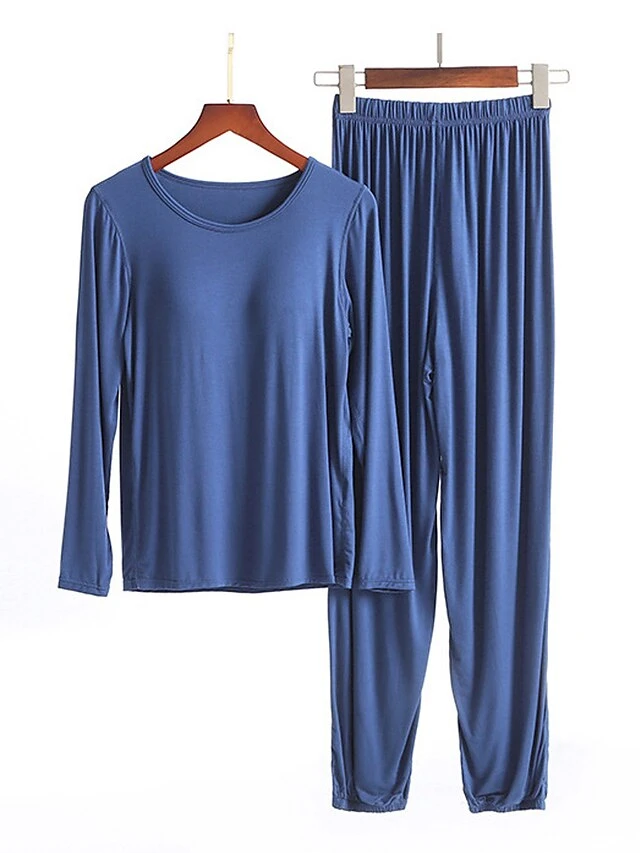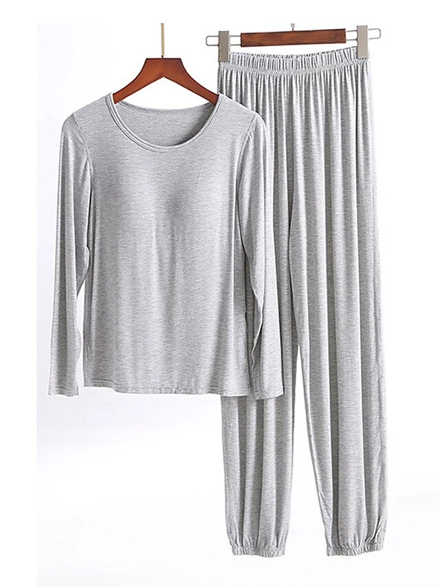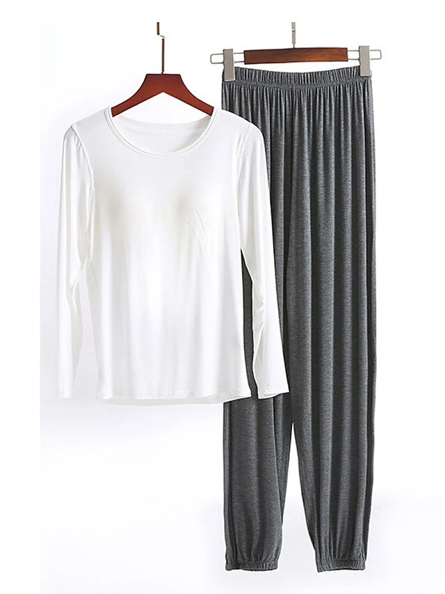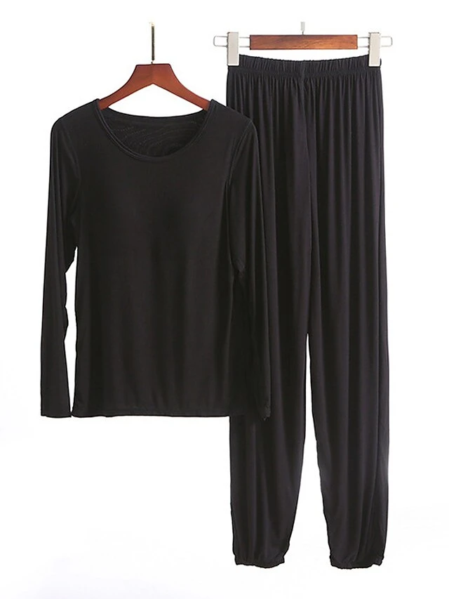 Women’s Modal Pajamas Sets With Chest Pads Pure Color Casual Comfort Home Bed Modal Breathable Crew Neck Long Sleeve T Shirt Tee Pant Elastic Waist Fall Winter Black White