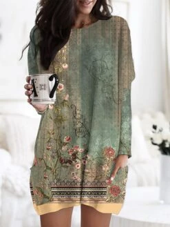 Women’s Nightgown Flower Fashion Comfort Home Daily Polyester Crew Neck Long Sleeve Pocket Fall Winter Light Pink Blue
