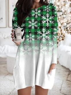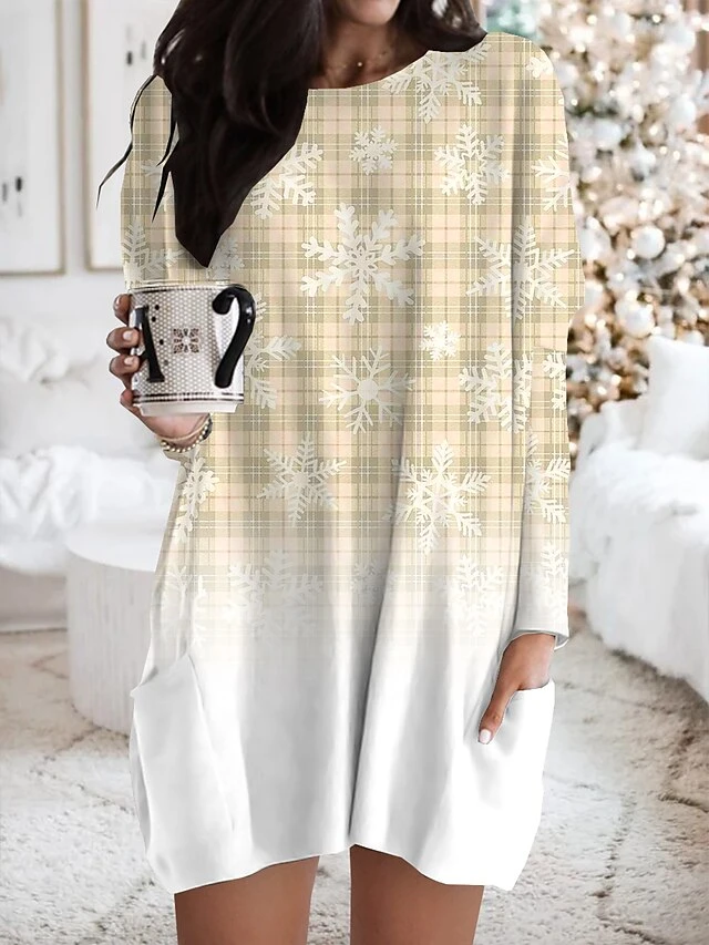 Women’s Nightgown Gradient Grid / Plaid Fashion Comfort Xmas Home Christmas Daily Polyester Crew Neck Long Sleeve Pocket Fall Winter White Red