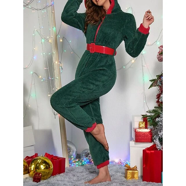 Women’s Onesie Pajama Elk Warm Fashion Plush Home Christmas Daily XmasWarm Hoodie Long Sleeve Fall Winter Green