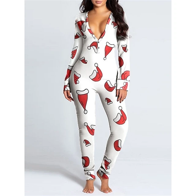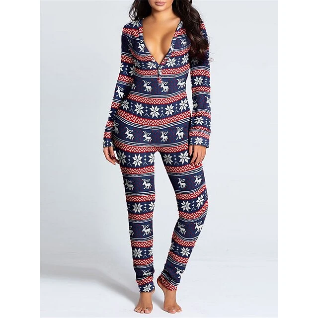 Women’s Onesie Pajama For Adult Elk Snowflake Casual Comfort Soft Xmas Home Christmas DailyBreathable V Wire Long Sleeve Hole Fall Winter White Red