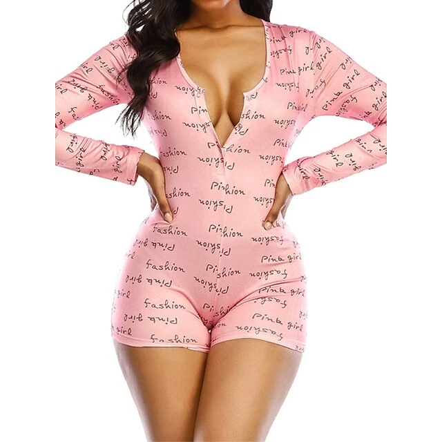 Women’s Onesie Pajamas Heart Letter Hot Casual Comfort Home Daily BedBreathable V Wire Long Sleeve Button Fall Winter Pink Red