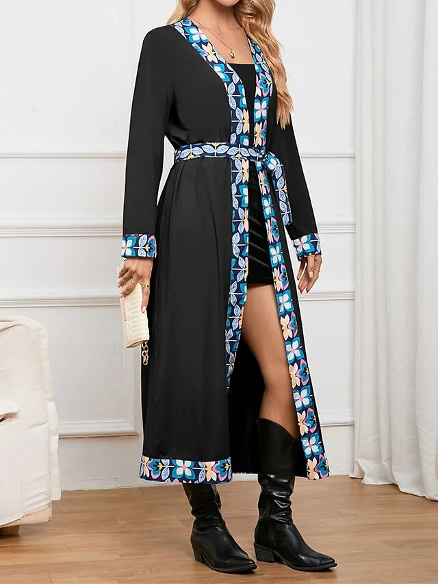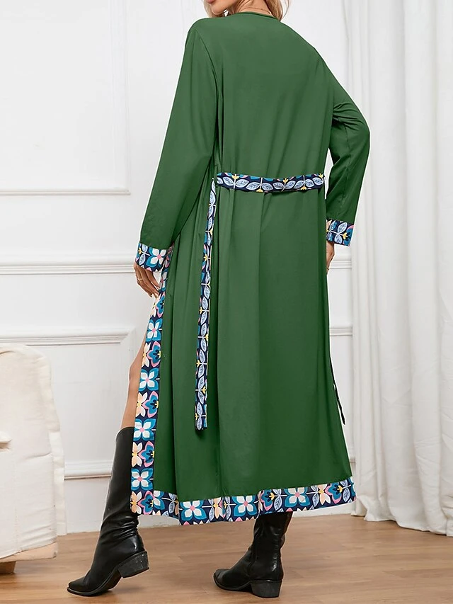 Women’s Pajamas Bathrobe Flower Simple Casual Comfort Home Bed Wedding Party Polyester Breathable V Wire Long Sleeve Summer Fall Black Green