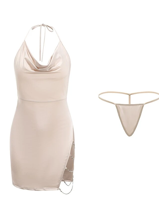 Women’s Pajamas Loungewear Chemises & Negligees Costumes Pure Color Sexy Uniforms Hot Party Home Bed Polyester Gift Plunging Neck Sleeveless Hole Summer Spring Black Champagne