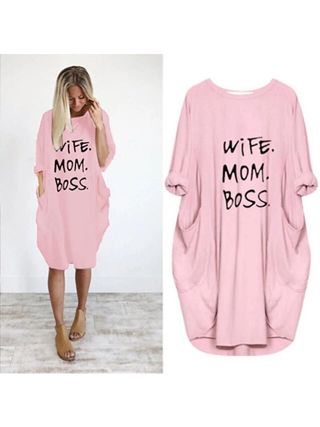 Women’s Pajamas Loungewear Nightgown Sleepwear Letter Fashion Simple Basic Home Daily Mother’s Day Polyester Pullover Summer Spring Claret Orange Red