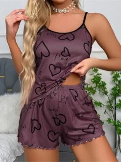 Women’s Pajamas Pajama Top And Pant Sets Heart Fashion Casual Soft Home Daily Bed Polyester Breathable Straps Sleeveless Strap Top Shorts Summer Spring Red Purple
