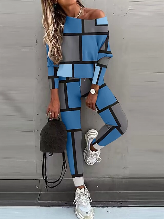 Women’s Pajamas Sets Grid / Plaid Fashion Casual Comfort Home Daily Bed Polyester Breathable Crew Neck Long Sleeve Pullover Pant Fall Winter Pink Blue