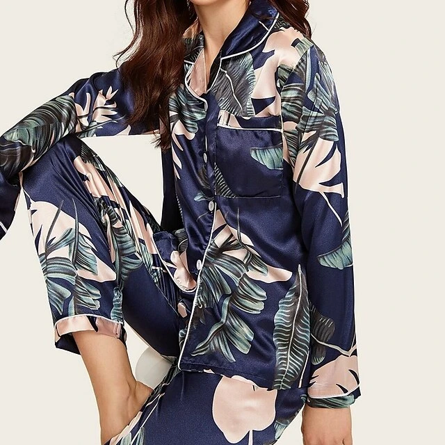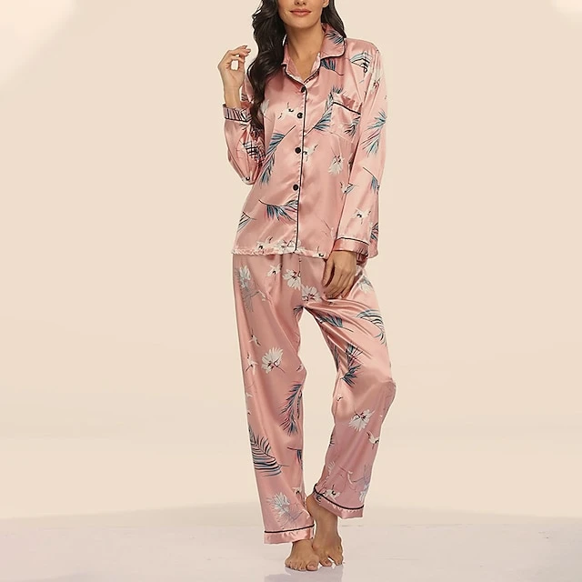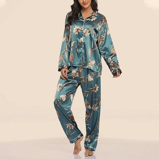 Women’s Pajamas Sets Pjs 2 Pieces Flower Simple Hot Comfort Party Home Daily Satin Lapel Long Sleeve Shirt Pant Elastic Waist Fall Spring 6003 6020